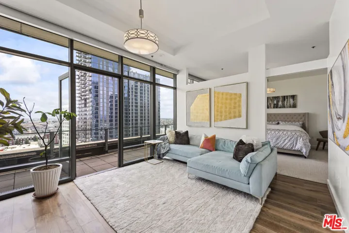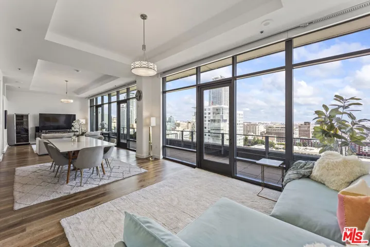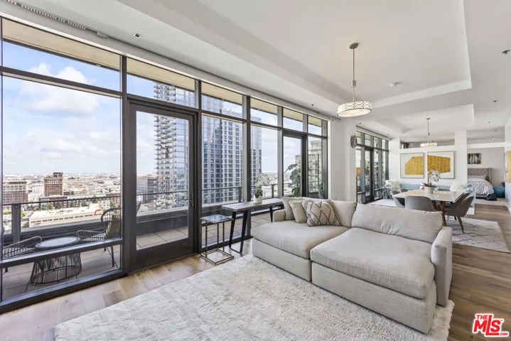 An exceptional Turn-key, VERY Light Bright Penthouse condo with 2 bedroom, 3 bath in the prestigous South Park neighborhood of downtown Los Angeles. Wow, this Rare East facing unit has massive breathtaking panoramic views of the downtown Los Angeles Skyline and Santa Monica Mountains is perfect for entertaining all your family and friends. Very high ceilings featuring floor to ceiling windows have built-in electronic shades and a Massive Sun-drenched balcony running entire length of condo. Stunning Primary Bedroom features an ensuite full bath with separate tub and shower, custom walk-in closet and blackout curtains. Spacious 2nd bedroom also have large en-suite bathroom and walk-in closet. Gourmet kitchen includes all stainless steel appliances, Large breakfast bar & dining area and adjacent laundry room!! This is truly a beautiful space with great energy and views that are unmatched. 2 blocks from Crypto.com Arena and close proximity to the best hotels, bars, shops and museums. Ralphs and Whole Foods are only few blocks away and there’s a farmers market every Saturday a block away. Wonderfully equipped gym and fitness room! Has it all, swimming pool, hot tub, 4 Viking Grills, picnic area and garden on the terrace floor. This is a LEED certified building and is a Must see.