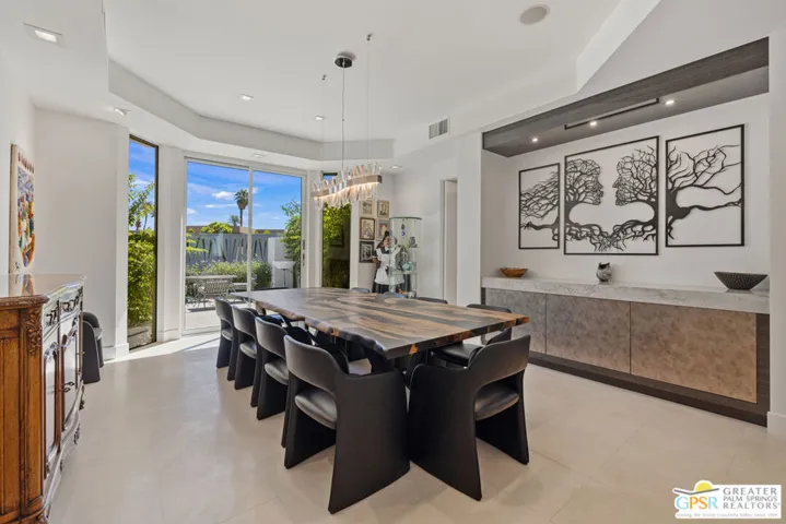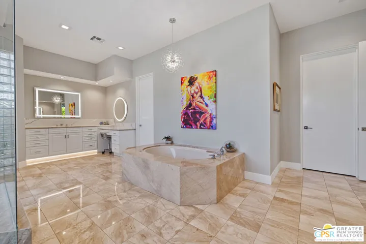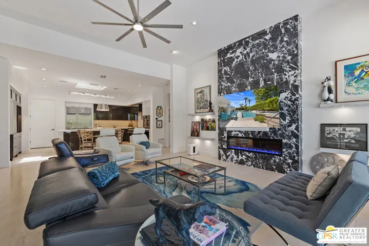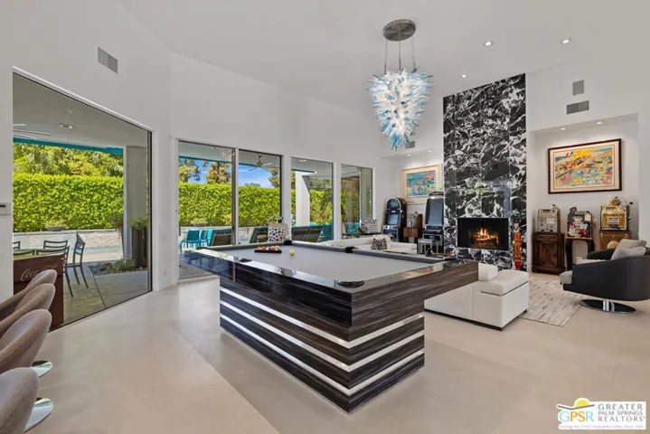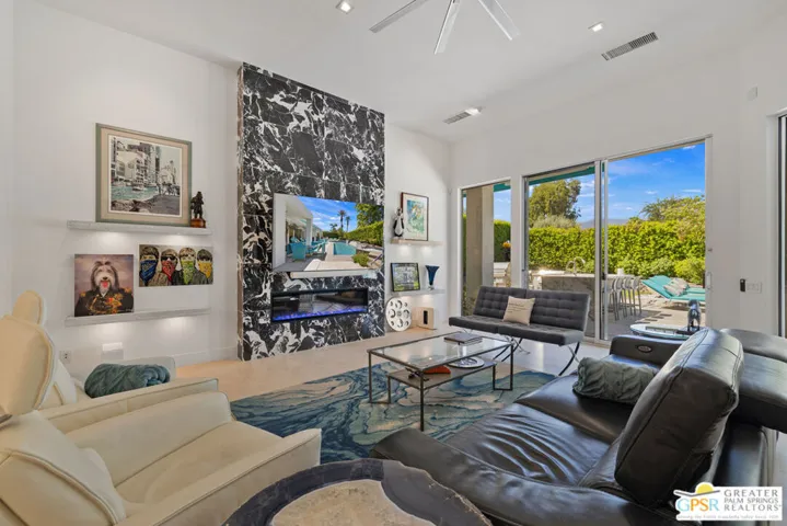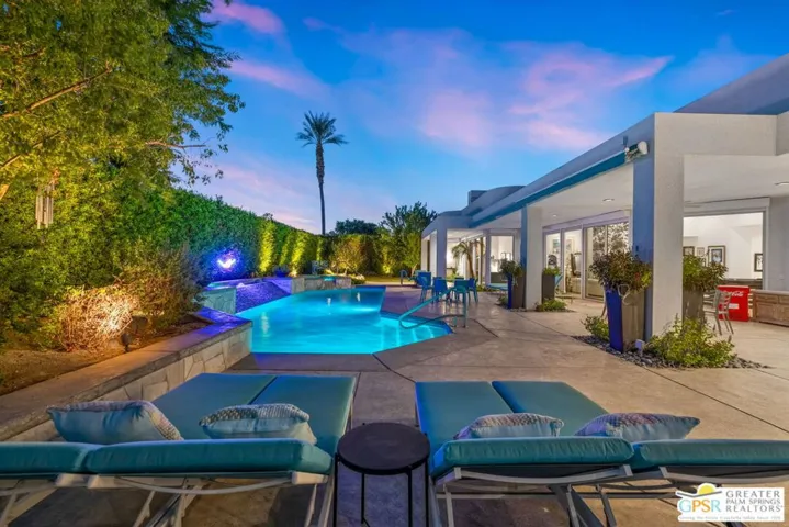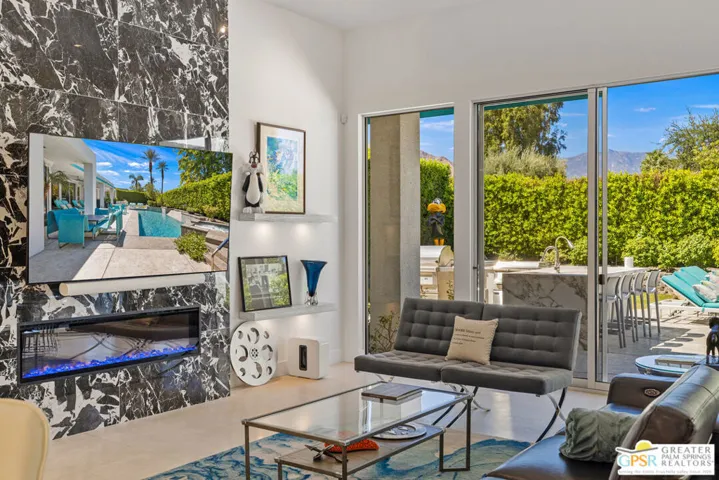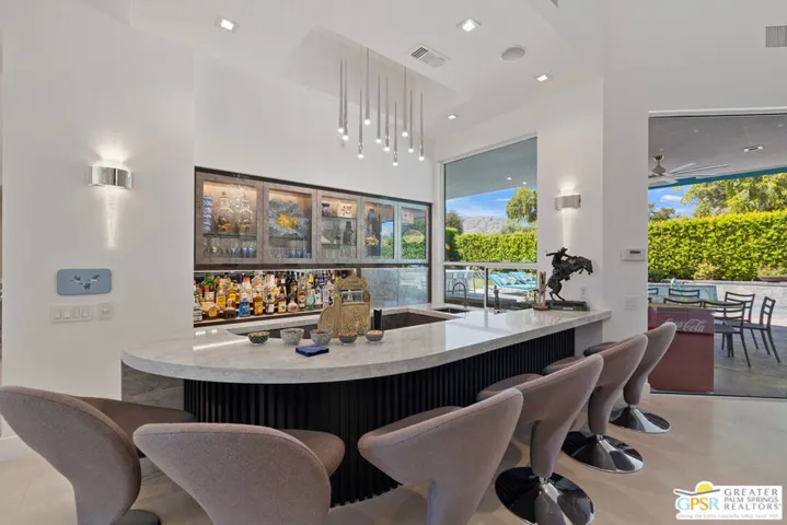 Proudly standing behind the exclusive gates of Waterford in the heart of Rancho Mirage, this architectural property is more than just a home: it’s a statement of modern luxury, serenity, and thoughtful design. With over $1 million in recent renovations, every inch of this extraordinary property reflects an elevated lifestyle curated for both grand entertaining and intimate everyday moments. Step inside through a private, sun-kissed courtyard, and you’ll immediately feel the difference. The formal entry gives way to soaring ceilings and expansive floor-to-ceiling windows and sliders that offer natural light and frame picture-perfect views of lush, mature landscaping as well as the surrounding mountains. Designed with intention and executed with artistry, this 4-bedroom, 4.5-bath home blends contemporary elegance with functional design. Warm LED lighting – 133 custom fixtures in total – casts a soft glow across designer finishes, bespoke cabinetry, quartz and porcelain surfaces, and sophisticated custom wall treatments that flow seamlessly from room to room. The heart of the home is a stunning entertainer’s living room, complete with a sleek fireplace, a sophisticated resort-style wet bar, and west-facing views that turn every sunset into a nightly masterpiece. For more casual gatherings, retreat to the expansive great room anchored by a chef’s dream kitchen outfitted with triple ovens, a commercial-grade six-burner range and grill, dual Miele dishwashers, a warming drawer, dual sinks, and a custom exhaust hood that’s as much a work of art as it is functional. Every space speaks to luxury and comfort. The primary ensuite is a private sanctuary unto itself, offering a retreat lounge area, a two-way fireplace, tranquil mountain and pool views, and direct access to the resort-style backyard. The spa-inspired bath rivals any five-star resort with split vanities, dual water closets, a dual-entry walk-in shower with multiple rain and body jets, a soaking tub, and two oversized walk-in closets designed for effortless living. Each of the three junior ensuites are thoughtfully appointed, offering privacy, gorgeous views, and their own luxurious baths. One is fully wheelchair accessible. Outside, the home reveals its soul – a west-facing terrace designed for unforgettable moments. Relax in the oversized saline pool with multiple cascading water features, soak in the spa under the stars, or cook and entertain in the newly added outdoor kitchen. From morning coffee in the courtyard to golden hour cocktails on the terrace, this home was built to be lived in beautifully. Additional highlights include: 5 separate HVAC zones for personalized comfort; 68 fully owned solar panels for energy efficiency; motorized exterior shades in key areas; newly installed drip and sprinkler systems; inside laundry room with custom dog shower; 3-car garage with EV charging, new motors, and built-in storage; full access to Waterford’s private tennis courts; and minutes to prestigious country clubs, luxury dining, and world-class entertainment. This is more than a home. It’s a lifestyle – a private sanctuary nestled in one of the Coachella Valley’s most desirable communities. Whether you’re hosting lavish gatherings, relaxing poolside, or watching the mountains change color with the desert sun, this Rancho Mirage retreat is designed to elevate every moment.