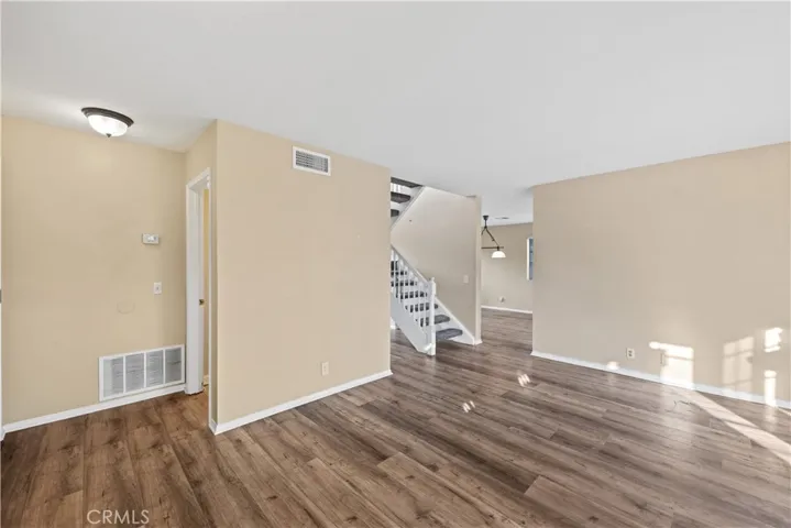 Adorable Pool Home with a huge flat backyard with 3 bedrooms, 2 1/2 baths, loft, living room with fireplace, & almost 1700 square feet across the street from the lake. Cozy living room featuring a wood-burning fireplace with mantel, open kitchen with newly painted white cabinets, stainless steel fridge & dishwasher, & bay window overlooking front yard, kitchen opens up to the dining area with a brand new slider that leads out to the patio and the big backyard & pool. Downstairs also features 1/2 bath that offers a door leading out to the backyard. Newer wood flooring covers the entire main level. Upstairs you’ll find a loft with a fireplace that is the perfect family room, TV Room, or office with built-ins. Good-sized primary bedroom with an attached bath with dual sinks & separate room with shower/commode. 2 additional bedrooms; 1 bedroom with built-in desk, and the other with view of the pool. Additional bath upstairs. 2 car attached garage with laundry & storage (Separate room in the garage that can be removed if desired). Driveway offers boat/trailer parking. Private backyard features a fully fenced sparkling pool with BRAND NEW pump. Beautifully landscaped backyard and front yard with fruit trees. BRAND NEW HVAC system. Located on a great quiet street that is across from the lake. Canyon Lake is an exclusive gated and 24-hour guarded community & includes a private lake for boating, skiing, swimming, wake boarding, fishing, paddle boarding, canoeing, + 6-lighted tennis courts, Olympic size pool, beaches, parks, pickleball and basketball courts, club house, senior center, and clubs plus the community offers an 18-hole golf course golf & riding stables. Rent includes gardener and pool maintenance. Available now.