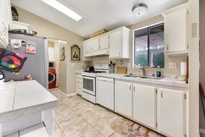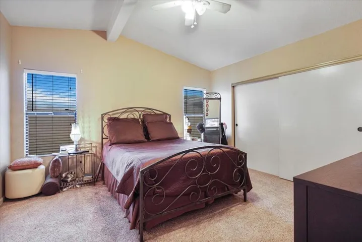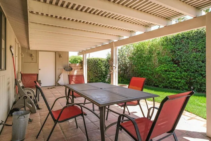 YOU OWN THE LAND!! Home has an amazing fenced private covered patio and grassback yard. Ivey Ranch is a 55 and better community with a 9 hole PGA rated golf course and driving range. There 4 community pools, 2 community spas, clubhouse and tennis courts.This home has an open floor plan – living room dining room and kitchen with 2 bedrooms and 2 baths and a laundry room.Sliding glass door in the dining room takes you to a very private walled grassy back yard with tile patio with overhang for shade.Don’t forget the 2 car attached garage.You own the land and the home has foundation and can be financed.House is being sold ‘as is’ so bring your decorating touch and create your perfect home in the desert.