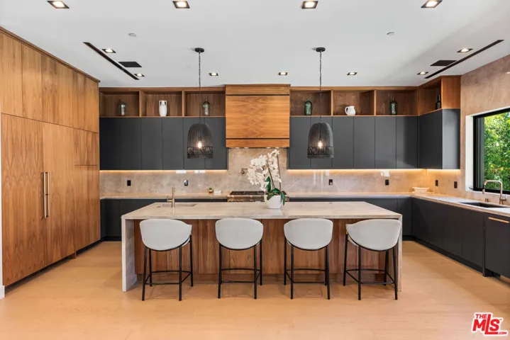 This fully renovated 5BR/4.5BA single-story home in coveted Chandler Estates offers 3,600 sq ft of refined living space on a prime corner lot. The open floor plan features a chef’s kitchen with custom cabinetry, high-end appliances, and a large center island. A spacious dining area with wet bar and a dramatic family room with vaulted wood ceilings and stone fireplace create a warm, elegant atmosphere.Seamless indoor-outdoor flow leads to a private backyard oasis with a cabana, fireplace, pool/spa with waterfall, and built-in BBQperfect for entertaining. The luxurious primary suite includes vaulted ceilings, stone fireplace, walk-in closet, and spa-inspired bath.Custom finishes, smart home technology, surround sound, and a full security system complete this exceptional offering in one of Sherman Oaks’ most desirable neighborhoods.