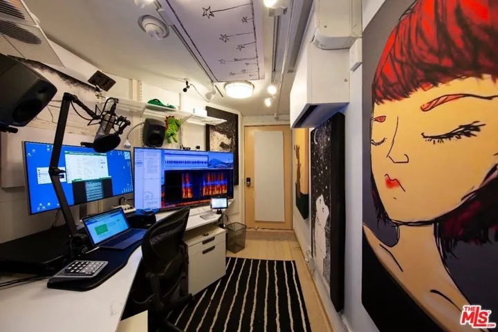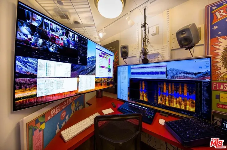 Set on a quiet, tree-lined street in the highly coveted Library Square neighborhood of Sherman Oaks, this custom-built 2008 estate offers exceptional privacy, versatility, and a world-class three room recording studio for audio and video. With 3,168 sq ft of living space, the two-story home features 6 bedrooms and 4 bathrooms 3 beds/2 baths on each level making it ideal for either single family, multi-generational living, rental income or live/work versatility. The rear structure boasts a four hundred square foot studio space above with full kitchen and bath and the recording facility below, adding an additional bedroom and two more baths for a total of 7 bedrooms and 6 baths. Both levels in the main house are flooded with natural light and offer soaring 10 ft ceilings, recessed lightin and a bright, open feel. Finishes include rich hardwood and travertine floors, modern kitchens with granite countertops, top-of-the-line stainless steel appliances, walk-in pantries, breakfast bars and a cozy fireplace. Bathrooms showcase stone flooring and sleek frameless glass shower surrounds. The entire home is “smart home equipped” – almost every dimmer, ceiling fan, door lock, HVAC, alarm sensor and irrigation control can be remotely supervised. Each level enjoys its own primary suite and private entrance, with easy interior access between floors as well as exterior entry. Washer and dryer have access located on the shared first floor. Outdoors, the gated property includes a large grassy backyard with mature fruit trees, room for a pool and additional gated parking. The detached 2-car garage has been transformed into a state-of-the-art professional grade multi-room recording studio, complete with a dedicated bath/shower and high speed satellite and fiber-optic internet service. Above it is a 400 sq ft studio with kitchen, bath and its own dedicated ground level laundry facilityperfect for a home office, guest, or a creative retreat. A rare opportunity to own a turnkey income-generating property or a flexible family estate in one of Sherman Oaks’ most desirable neighborhoods. Conveniently close to renowned dining, outstanding shopping and just a short drive to the Westside, beaches and freeways. Create your California lifestyle.