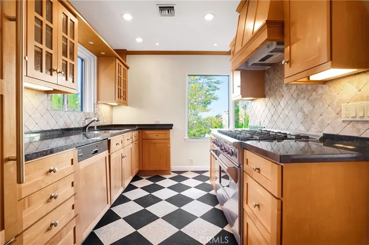 SPECTACULAR PANORAMIC VIEW, in the Studio City Hills, of the entire Valley enjoyed from BOTH a modern, private, fully furnished DECK as well as a wrap-around glass-enclosed living room. The Deck is oversized with a Bar B Que and two eleven-foot umbrellas. Single Level, South of the Boulevard, 5-minute walk to the heart of Studio City with a JACUZZI and outside shower! 2 Bedrooms, Den/Office, 2 baths (master bath recently renovated), Formal Dining Room, Fireplace, Hardwood Floors throughout, Modern Granite Kitchen with SUBZERO Refrigerator and WOLF Stove and state-of-the-art Water Filter. ALL rooms open to the Fabulous Deck or to the Private Patio. 220v EV Charging outlet in the garage, smart thermostat. Newer Roof (2023). AND – up the hill from Laurel Tavern, Heavy Handed, and the Black Market Liquor Bar and down the street from the Shops @ Sportsman’s Lodge.