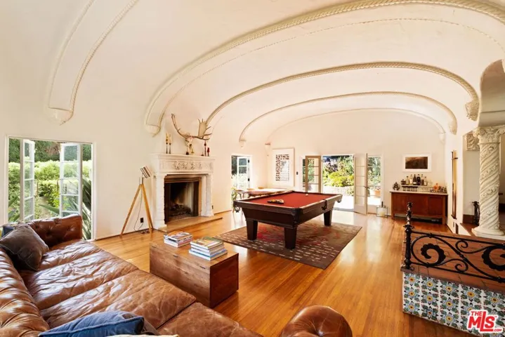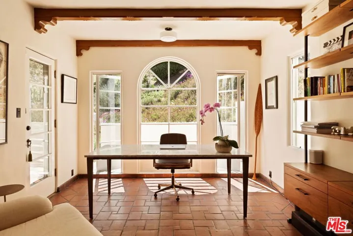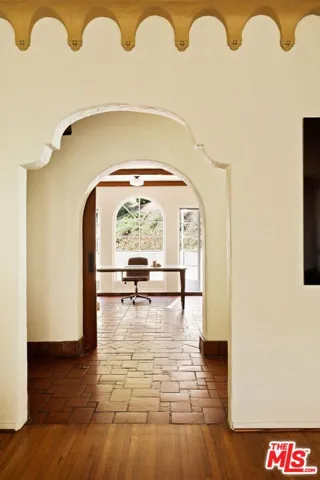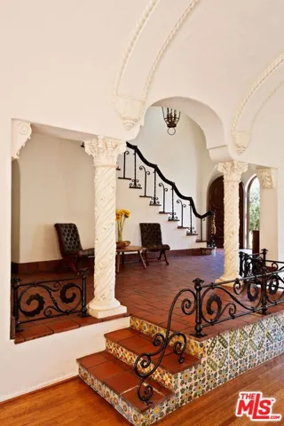 On a prime street in lower Los Feliz Oaks, just steps from Griffith Park, this refined Spanish Colonial Revival is a timeless amalgam of architectural artistry and sensitively updated modern convenience. Designed by notable architect Theodore J. Scott and built for developer Maurice Korman in 1928, the home showcases rich original details such as intricate plasterwork, hand-painted ceilings, hand-carved doors and beautiful built-ins. Step into a grand formal double height entry, where a sweeping wrought-iron staircase sets the tone and a quatrefoil window bathes the space in light. Note the patina on the original terracotta tile flooring and the Moroccan tile on the stair risers. The large barrel vaulted living room is anchored by an ornate fireplace and opens via french doors to the outdoors. A formal dining room is currently utilized as a family room and the new kitchen features custom cabinetry, quartzite counters, Fisher + Paykel appliances, a cozy breakfast nook and opens out to an outdoor dining and BBQ area. There is also a home office on this level with a soothing garden view. Upstairs, the primary suite is a tranquil retreat with private balcony, serene garden views and walk-in closet and dressing room. Two spacious guest bedrooms and an outdoor covered veranda complete the upper level. All the bathrooms upstairs feature wonderful original tile work. On an oversized double lot, the grounds are a peaceful retreat shaded by oak and olive trees. The topography of the site creates excellent privacy and there is room for a pool if desired. The outdoors truly feels like your own private park and it’s also a terrific space for entertaining. There are numerous outdoor seating areas and lush gardens of succulents and native plants, along with views of the iconic Observatory. The home features upgraded plumbing, electrical, dual zone HVAC, a two car garage and large finished basement. Conveniently situated near the restaurants and shops of Los Feliz Village, Lazy Acres market, summer concerts at The Greek Theater and the hiking trails of Griffith Park, this singular historic home is an inspiring sanctuary in one of Los Feliz’s most sought after neighborhoods.