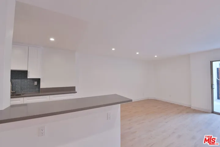 This modern 1 bedroom apartment features an open concept living area with wood style flooring, recessed lighting, and a beautifully updated kitchen with quartz countertops, sleek cabinetry, and a stylish glass tile backsplash. Large sliding doors lead to an oversized private patio, perfect for entertaining or relaxing outdoors. Freshly renovated and filled with natural light, this home offers a comfortable layout with contemporary finishes in a prime location.