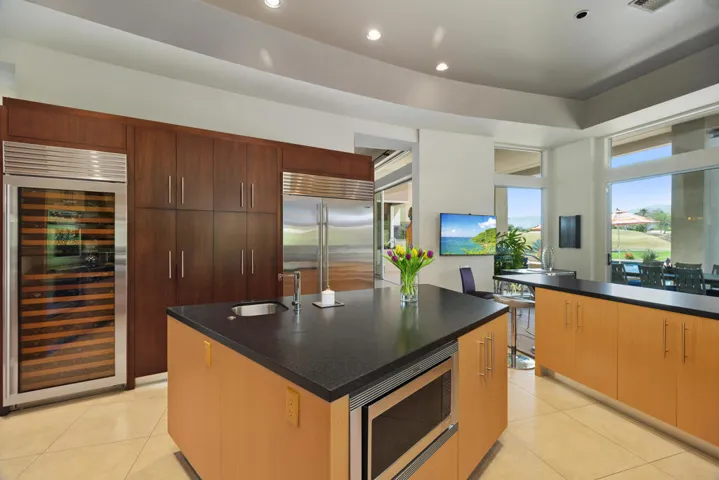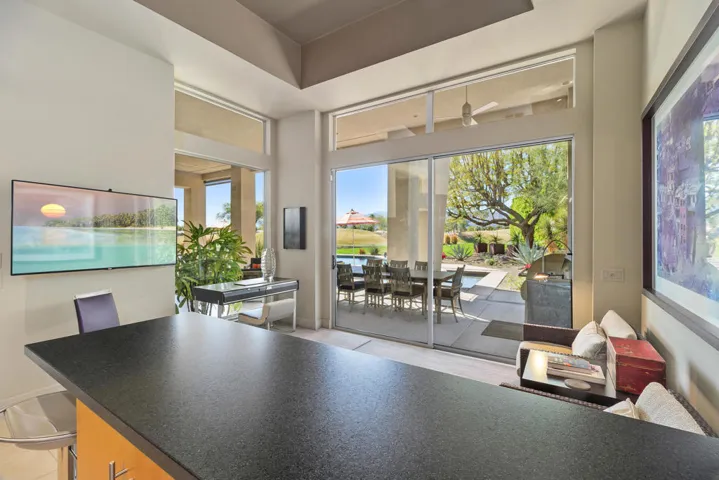 Elegant contemporary Estate in the Coveted Westgate community in Mission Hills CC. This home features stunning architecture – almost 2/3 acre with sun filled southern exposure and a 180 degree views of lake, fairway and mountains. The homeowner spent over $1M remodeling and upgrading this home. Expansive great room features a custom fireplace, buffet and wet bar. The morning room and gourmet kitchen with stainless steel appliances, black honed granite counters and custom pearwood and wenge cabinets including wine storage. Large master suite offers views, fireplace and glass tiled master bath. Home theatre features top of the line audio/video equipment and unbelievable acoustics. The guest house is the perfect space… a living area and 2 bedrooms with ensuite baths. Great room opens to an exceptional outdoor entertaining area with built-in BBQ, pool/spa, waterfalls and spacious grounds. Extensive use of custom designed metal from the entry gate to the great room fireplace and unique interior architectural wall. You’ll find spectacular lighting throughout this solar powered home. This home also has a 4-car garage and its very own private gate and a brand new roof. Come home to your own very private piece of art on a magnificent lot!!!