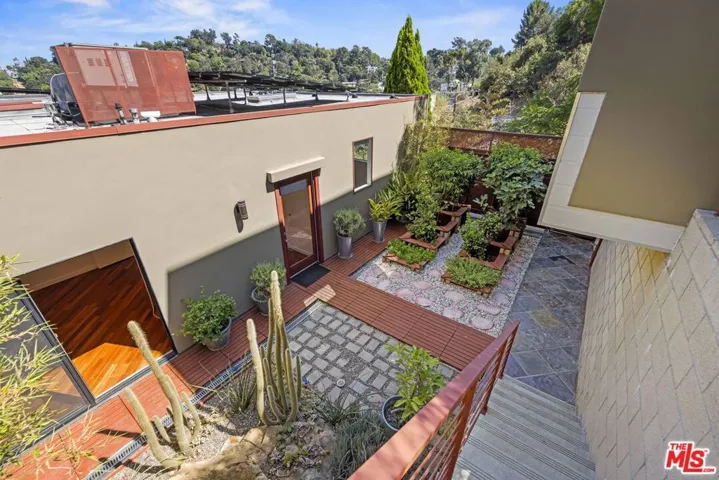 There are homes that are recognized and appreciated properly by very few. In a world overwhelmed by an avalanche of new construction focused on maximizing square footage and stacking ADUs, it’s important to remember that the most meaningful things in life are not measurable by an appraiser’s ruler. They are measured by energy, by presence, and by the ease with which life flows in a space. This home is a story of true love. A story of falling in love – with this home, and with each other – rooted in the understanding that details matter, and that craftsmanship does too. Because that is the only way to create something meaningful, something that endures through the decades. Welcome to Casa Alta – your serene perch above it all in the hills of Silver Lake Heights. A one-of-a-kind architectural compound where privacy, design, and inspiration meet not only for the moment – but for a lifetime. Per sempre, as some people with an intriguing accent might say. Your first introduction to this home begins with the garage – a thoughtfully executed two-car structure, with an additional two spots just outside in the driveway. The system behind the 30-panel solar array installed on the property could be found here too. From the first moment, your home greets you with natural materials – but it doesn’t warm up to you right away. It says hello with cooler textures: concrete, metal, and stone. Think of this entry foyer as a secured portal that could easily transform into a lounge or bar area. As you enter the main level, you’ll find the open floor plan that everyone desires. Not the kind of openness that feels like a warehouse or an echo chamber, but a deliberate, nuanced layout where the living room, kitchen, and dining areas coexist with balance and autonomy. The luxurious kitchen (top-of-the-line appliances from Fisher & Paykel, Bosch, custom cabinets, etc) steps aside gracefully, letting the view and the natural flow of the space take center stage. The home begins to soften here, with slate tiles placed where needed, and the warmth of Brazilian Tigerwood flooring grounding the entire level. A massive wraparound balcony floods the interiors with light, breeze, and life. One thoughtful feature is the outdoor staircase – perfect for entertaining – allowing guests to reach the backyard from the main level or even the street, without entering private spaces like the bedrooms. Because there are some corners meant to remain invitation only. The home’s consistency and flow are unparalleled. And nowhere is that more evident than in the primary suite. Exposed beams in the bedroom carry on a visual dialogue with the Brazilian Tigerwood flooring, echoing the green hills of Silver Lake and Echo Park seen just outside your windows. A cedar-lined walk-in closet elevates the organic feel of the space, and of course – a private balcony. The bathroom is an experience unto itself, with a steam shower, hammered copper sinks, and an oversized iron soaking tub – a testament to craftsmanship and taste. Two additional bedrooms complete this floor – one of which has direct access to a perfectly manicured private backyard. But perhaps the most striking reveal is the detached studio – complete with its own secret garden. A jewel box perched atop the hill that will inspire even the most grounded and rational among us. This flexible space is ready to meet whatever purpose your imagination can dream up, including possible conversion to an ADU. Directly beside the house is a terraced lot – ripe for a vegetable garden, or even another home. The separate parcel, over 9,000 square feet in size, is optional for the buyer with vision of residing in a larger compound. Not all homes are created equal. Casa Alta is unique in countless ways – and now, we’re in search of someone equally special. Someone who doesn’t just understand this home, but feels it. Someone who can appreciate it for what it is, for what it could be, and for who they themselves could become while living here.