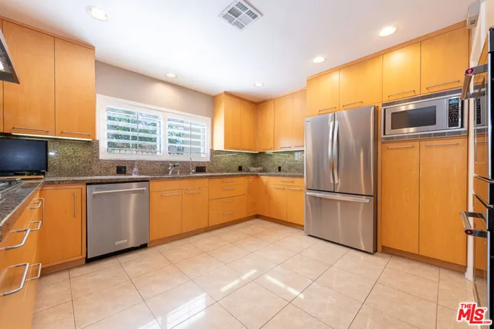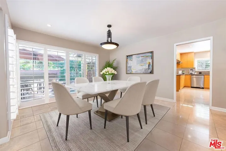 Surrounding a serene backyard retreat with a black-bottom pool, brick decking, fountain, and multiple lounging areas, this single-story contemporary delivers both style and comfort in the heart of upper Brentwood’s coveted Bel Air Knolls. Spanning approximately 3,386 sq ft on an expansive 11,931 sq ft lot, the home offers 5 bedrooms, 4 bathrooms, and a thoughtful layout designed for everyday living and entertaining. Inside, clean architectural lines, stone-tiled floors, and walls of windows fill the interiors with natural light creating a warm yet refined ambiance throughout. The formal living room features a granite wet bar, fireplace, custom entertainment center, and sliding doors to the outdoors, while the elegant dining room opens to a pergola-covered patio ideal for gatherings. A chef’s kitchen appointed with granite countertops, stainless steel appliances, and maple cabinetry connects to a spacious family room with built-ins and patio access. The private primary suite serves as a calming retreat with direct access to the pool, plantation shutters, and an ensuite bath. Additional bedrooms are generously sized, including a private guest suite near the kitchen. A dedicated laundry area links to the attached two-car garage. With convenient proximity to the 405 and 101 Freeways, Mulholland Drive, the Getty, and top-rated schools including Roscomare, Curtis, Berkeley Hall, Milken, Mirman, and UCLA, this timeless property offers exceptional livability in one of Los Angeles’ most desirable neighborhoods.