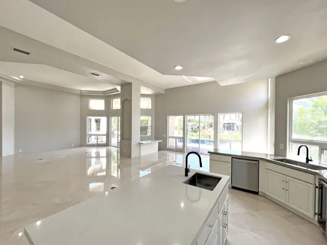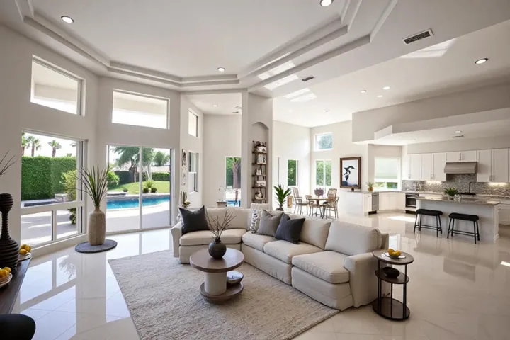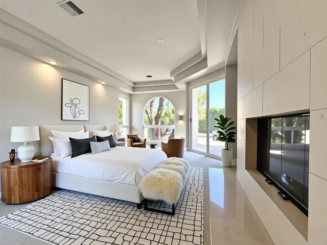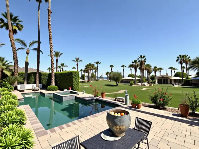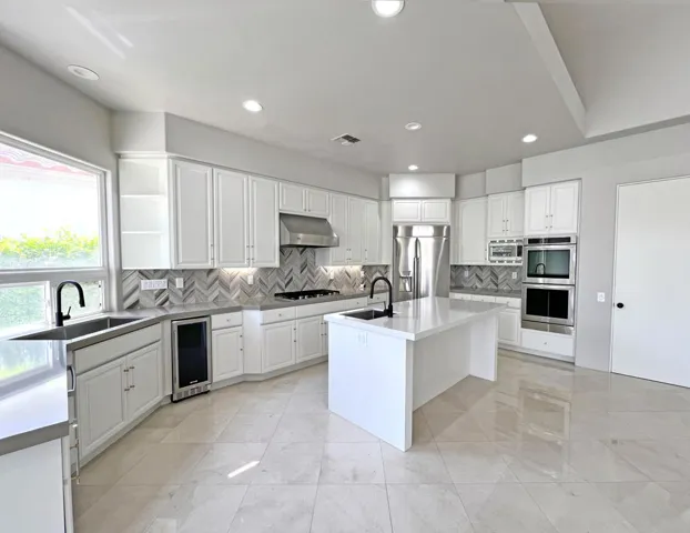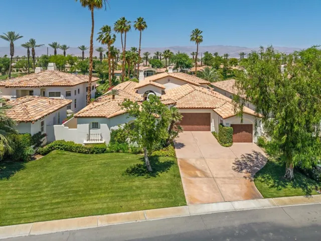 Nestled within prestigious Rancho La Quinta Country Club. Gorgeous modern renovated home with stunning views of the colorful hues of the panoramic Chocolate Mountains & the 9th. fairway of the Robert Trent Jones Jr. Championship Golf Course. Ideally situated on a private cul-de-sac & close to the Club House & all of the amenities. The large backyard entertainer’s covered patio features quality stone pavers, custom pool with elevated spa, waterfall & a large built-in BBQ cooking station. This high end PALACIO II mini-estate consists of 4 bedroom, 4.5 baths. A deluxe detached guest house with a romantic fireplace & kitchenette offers guests privacy & comfort. Upon entering the charming courtyard you will be greeted by hand-laid paving stones. Enter the beautiful custom wood glass dual doors and you will be impressed with the craftsmanship & attention to detail. This home has been almost completely retrofitted from top to bottom & has been re-envisioned & modified by removing the wall that separates the kitchen, family room-living room resulting in an amazing open floor plan concept that creates spaciousness with multiple entertainment venues. Features boast updated limestone flooring & plush upgraded carpeting in bedrooms-all bedrooms are ensuite. Modern interior paint colors & modern ceiling fans enhance the ambiance, LED lighting throughout. The newly updated gourmet kitchen is a culinary delight with custom finished cabinetry, Quartz surfaces & beautifully designed contemporary backsplash & top of the line stainless steel appliances. Entertain in style from the step-down wet bar complete with the same luxurious features of the kitchen.The elegant formal dining room with its newly installed modern electric fireplace provides a warm & cozy atmosphere for entertaining. The primary bathroom suite offers Quartz counter tops. a redesigned soaking tub & updated walk-in shower with frameless shower doors. The lavish primary suite with a romantic fireplace opens directly to the pool & spa & offers stunning views of the golf course. HOA dues of $1,198 per month include social membership, use of club house, two other dining facilities, 8 pickleball courts, 9 tennis courts, bocce ball, fitness center, 24 hr. roving security, direct TV, internet, front landscaping & trash. Note: some images have been virtually staged to better showcase the true potential of rooms & spaces. This is resort living at its finest in prestigious Rancho La Quinta Country Club.