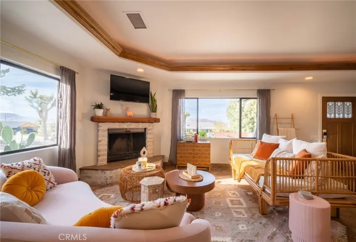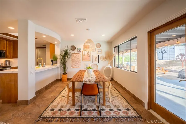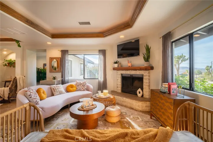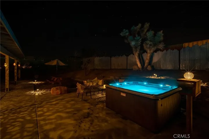 Rediscover serene desert living in this elegant, fully remodeled, Tuscan home nestled within Joshua Tree’s renowned “upper friendly hills” neighborhood. Located at 60467 Natoma Trail, surrounded by artists and trendy boutique restaurants, this bright, custom home offers an idyllic retreat away from city life. Just 5 minutes from the Joshua Tree National Park entry, this home features tile floors throughout that add sophistication and charm. The spacious outdoor area includes a fenced privacy yard and unparalleled views of the mountains and exceptional Joshua Trees. There are also two backyard storage containers, one creatively turned into a game room, and the other can be used as extra storage or even renovated. Enjoy awe-inspiring sunrises, breathtaking sunsets, and stargazing from the comfort of your backyard. The hot tub featured in the backyard is not included in the sale but can be purchased separately. Option for a roof viewing deck, staircase just needs to be re-attached to the existing deck. Feel the charm of this exclusive desert community and fall in love with the serene lifestyle it offers!