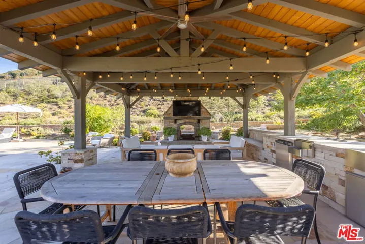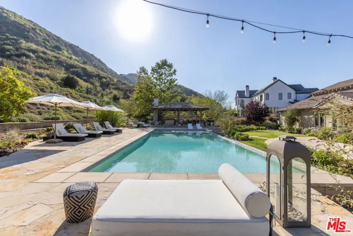 Welcome to a one-of-a-kind retreat, nestled behind private gates in the scenic hills of Agoura, where resort-style living meets timeless elegance. Located in the exclusive Vintage at Hidden Park community, this exquisitely remodeled estate sits on nearly 1.5 acres of beautifully landscaped grounds, offering the perfect blend of luxury, privacy, and natural beauty. The home features four spacious ensuite bedrooms, a thoughtfully designed nursery, and five fully remodeled bathrooms, each appointed with premium finishes and spa-inspired details. A completely renovated gourmet kitchen serves as the heart of the home, boasting top-of-the-line appliances, custom cabinetry, and designer stone countertopsideal for both everyday living and elevated entertaining.The open-concept floor plan is filled with natural light and high ceilings, creating a seamless flow between the expansive living and dining areas. The luxurious primary suite offers a peaceful sanctuary, complete with a spa-like bathroom and dual walk-in closets, providing both functionality and indulgence. For wellness enthusiasts, the home includes a private gym and sauna, creating a true at-home retreat.Designed with health and wellness in mind, this home features a whole-house water filtration system and non-toxic paint products throughout, ensuring a cleaner, healthier indoor environment for you and your loved ones.Step outside into your own resort-style backyard, where a sparkling pool is surrounded by lush landscaping, mature trees, and a tranquil al fresco dining area perfect for outdoor entertaining or quiet evenings under the stars. Additional features include a 4-car garage, ample driveway parking, and access to nearby hiking trails and open space preserves. All of this, just minutes from the iconic beaches of Malibu, offering the best of both hillside privacy and coastal lifestyle. This move-in ready estate has been meticulously upgraded and styled to perfection an exceptional opportunity to own a turnkey luxury home on nearly 1.5 acres in one of Agoura’s most desirable gated communities.