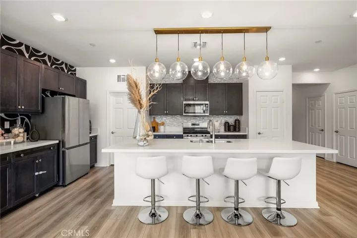 In the premier new neighborhood of Crimson Hills this single level stunner shows like an absolute model and features a 1/4-acre usable lot! Thoughtfully enhanced with designer finishes by a professional designer, this home combines style and functionality, offering a move-in ready space with custom touches throughout. Crimson Hills puts you right where convenience meets adventure. Walk the kids to Earl Warren Elementary, spend weekends cheering at Storm Stadium, or enjoy family outings at nearby parks. Shopping runs are a breeze with Costco, Lowe’s, and Lake Elsinore Marketplace just minutes away. Outdoor lovers will appreciate easy access to hiking trails, Rosetta Canyon Sports Park, and Lake Elsinore—perfect for boating, fishing, and fun on the water. Plus, with quick connections to I-15 and Hwy. 74, commuting and weekend getaways are simple. A custom doorway from the primary closet provides direct access to a guest room—an ideal setup for a nursery, home office, or private retreat! The spacious ¼-acre backyard is a blank canvas, ready for you to create your dream outdoor retreat—whether that’s a pool, garden, or entertainer’s paradise and one of the largest in the community!