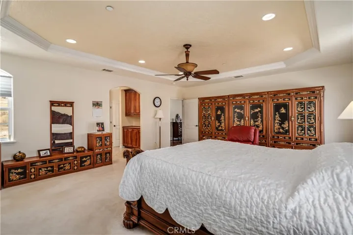 Situated on 9.87 acres, this Acton property showcases a double-stucco “Old World Style” exterior and a million-dollar view. A large covered patio provides the perfect setting for outdoor dining, entertaining, or simply enjoying the scenery. The attached 1170 sqft., 4-car garage is double insulated, offering added comfort and efficiency. The home is accessed through an impressive fiberglass front door, setting the tone for the quality craftsmanship found throughout the property.
