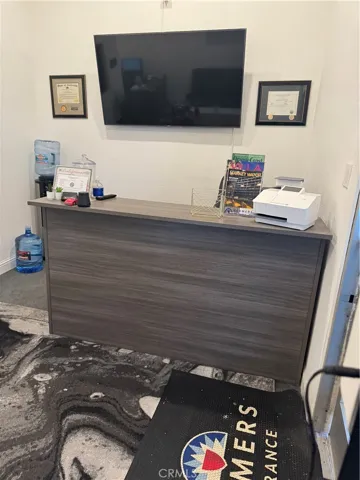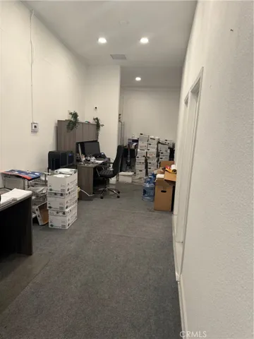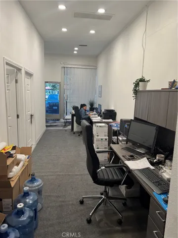 Small corner office perfect for a multitude of uses. Could even be a private hair/nail salon — good location. Pictures taken while still occupied by Insurance agent tenant. Lots and lots of boxes and paperwork and files everywhere but office is a good size once all is removed. Flat fee rent includes water and electric. Private powder room and storage areas as well. Front office reception area. Office will be vacated by current tenant on 11/01/2025.