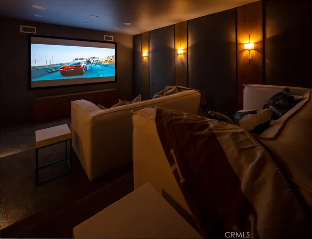 The lower level offers two additional en-suite bedrooms, a state-of-the-art theater, spacious game room with bar and 6-ft fireplace, a bonus gym, and a laundry room with dog-washing station. Smart home technology includes an ELAN 8 system controlling media, lighting, and security, plus 6-zone climate control and a three-car garage.