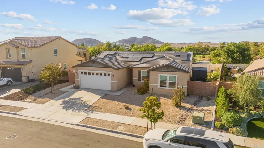 Welcome to this beautifully maintained 4-bedroom, 2-bathroom home in a desirable neighborhood. A converted den with French doors offers a versatile space for a home office, guest room, or potential bedroom! The open floor plan features granite countertops, a spacious kitchen with walk-in pantry, and a light-filled master suite with a walk-in closet. Eco-friendly solar panels with battery backup deliver year-round energy savings. The expansive backyard with mountain views is ideal for entertaining, gardening, or play. Conveniently located just 2 minutes to a local park and 5 minutes to schools, including a K–12 charter, this home blends comfort, convenience, and community charm!
