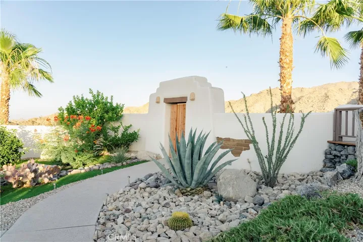 the backyard, you’ll find your own private luxury oasis filled with cacti, desert flora, and other plant life, accompanied by walkways and Mediterranean fencing. Tucked away from the world is the large pool and Jacuzzi; as you take in the view, you’ll be tempted to jump right in and take a dip! Enjoy a soft desert breeze on the rustic covered patio, relax on the large wood deck , or take a nap in the stylish cabana—this is outdoor living at its best!