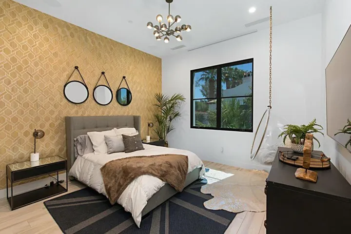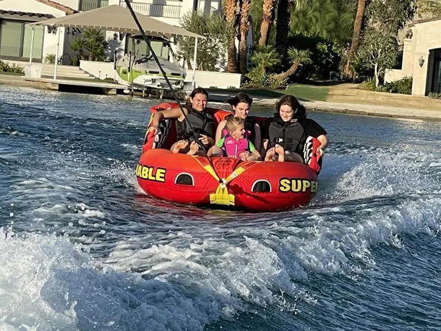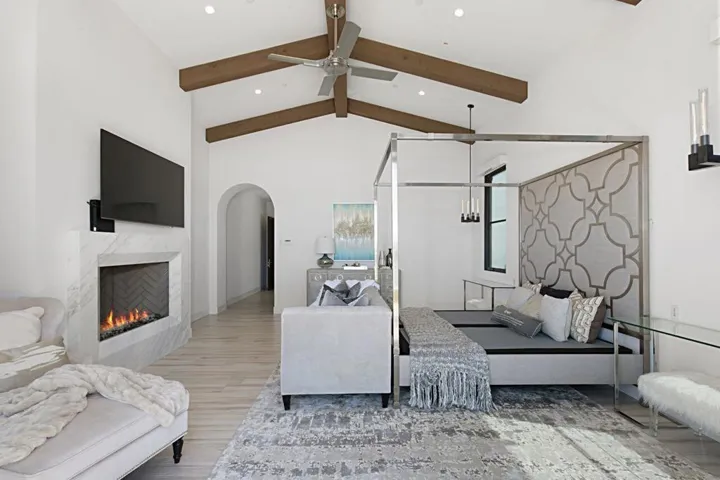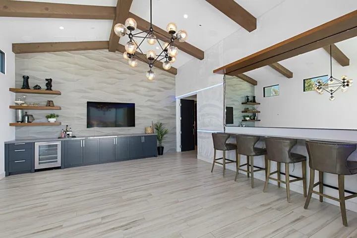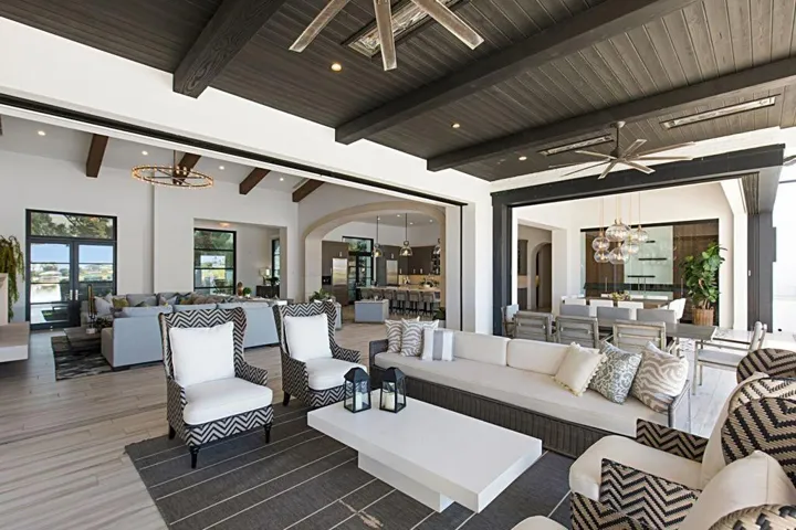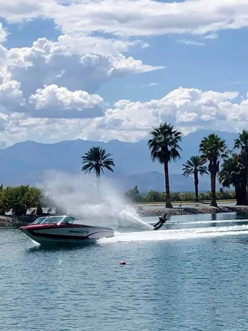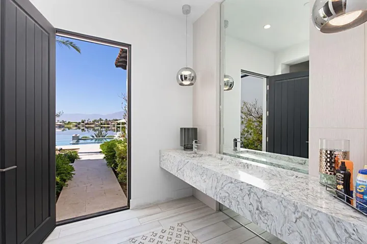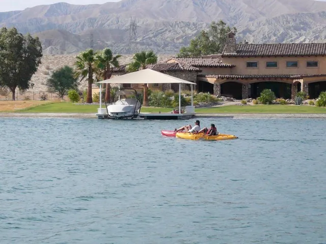 AVAILBLE NOW! Turnkey furnished- ask for discount for multiple months! Welcome to this gorgeous LAKE front, Private Beach and Boat Dock estate home at ShadowLake Estates, an active water ski & sport lake w/2 slalom water ski runs, paddle boarding, fishing, wakeboarding, sailing and efoil; only 21 min from Palm Springs. Four bedrooms, Theater Room, Game Room and open living, kitchen and dinning concept is 6000 sf. The dinning room is stunning and opens fully to the lake and back yard with easy sliders that tuck away. Fabulous open wine cellar and gorgeous artistic fireplace is the focal point between the blurred lines of indoor and outdoor space. This drop dead gorgeous LAKE front home features seamless indoor outdoor resort style living. The outdoor living space will be your favorite hangout. You even have your own Private boat dock & lift & Private Sandy Beach. This home is available furnished and made for living, attention to every detail in form and function. ShadowLake Estates is 20 min to El Paseo, 3 min to Landmark Golf, 5 min from Polo Fields / Coachella, 10 min to PGA West, 7 min to the Acrisure Arena, 7 min to Bermuda Dunes or the Thermal Private Airports, 21 min to Palm Springs. This home is a dream get away a place for the entire family, you might even get the kids to put down their phones!