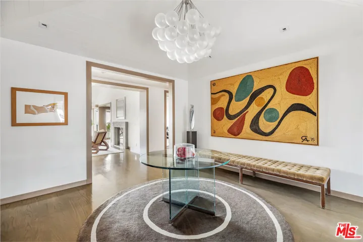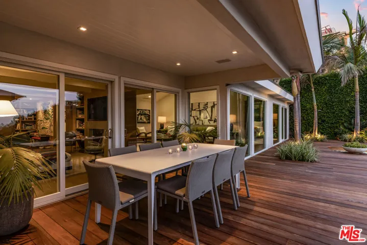 A private oasis in the Bird Streets, this fully renovated, mid-century home is the essence of California cool. With interiors designed by Peter Dunham, the updated ranch house has been published in Elle Decor. After entering the gracious foyer, you are mesmerized by the expansive view from every room. The primary bedroom, living room, family room, dining room, and kitchen all access a recently renovated wood deck and saltwater/mineral pool which evoke a hotel in St Barths. A smart Control 4 system, a standing seam metal roof, Waterworks fixtures, and custom millwork throughout create a polished and updated take on mid-century style. Open to the dining area, the handsome kitchen features Viking and Subzero appliances. A sophisticated primary bedroom suite with pitched ceilings contains a generous walk-in closet and marble bathroom. A library/office tucked into an interior space create the perfect work-from-home setting. Two half baths, a laundry room, two car Garage, and a private second bedroom with en-suite bath complete the floorplan. This pristine, turn-key home on a quiet cul-de-sac offers the best of the Bird Streets and a dazzling view all day and night.