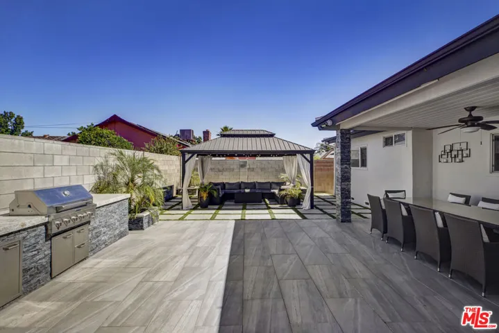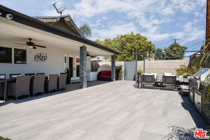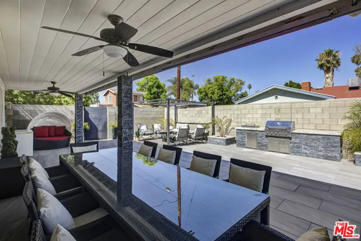 Absolutely delightful picture-perfect Panorama City remodeled home. Positioned on a corner lot in a tranquil pocket of this residential neighborhood, this 3BR/2BA single-story 1960s home features a gated driveway and front yard, hardwood flooring throughout, and recently remodeled kitchens and bathrooms. Expansive backyard with multiple entertaining areas and outdoor kitchen ideal for all of your gatherings large and small. An elegant foyer leads you into formal living room bathed in light with marble gas fireplace and recessed lighting, followed by an impressively spacious dining room. The cook’s kitchen is a showstopper – boasting large center island perfect for meal preparation, newer stainless-steel appliances, and custom cabinetry with plenty of storage space. Down the hallway you’ll discover 3 lovely bedrooms plus an additional room offering versatility as a home office, gym, playroom or walk-in closet. Enjoy two fully remodeled, spacious bathrooms, one of which is ensuite. This special home’s upgrades include newer flooring throughout, dual pane windows, baseboards, dedicated laundry room with side-by-side washer/dryer and prep area, central HVAC, updated copper plumbing and gas lines, and tankless water heater. Ample parking for at least 3 cars on the driveway behind the front gate plus home security camera system for added protection. Newer French doors will beckon you to the dynamite low maintenance gated hardscaped backyard, which also includes a built-in island kitchen, large stone pavers and an inviting lounge/relaxation area covered with pergola to shade from the sun. This is truly a warm space to relish time with friends and family. Enjoy close proximity to nearby freeways making your morning commute more pleasurable. Minutes from desirable local destinations, including NOHO Arts District, Kaiser Permanente, and sweet neighborhood joints such as Sri Siam Cafe, Cilantro Mexican Grill, Bill’s Burgers, Viet Kitchen and El Cocinero, to name just a few. An absolute winner from head to toe this is a wonderful chance to break into the LA housing market with a turnkey home.
