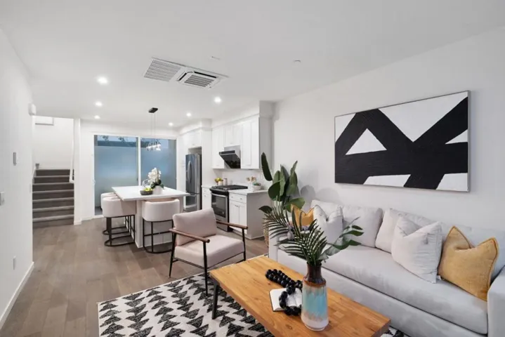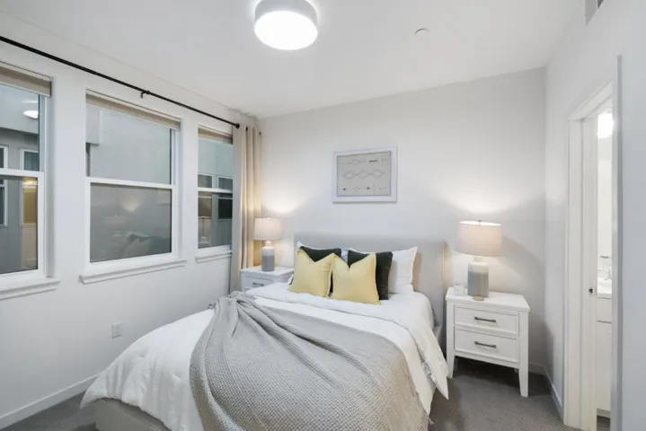 Welcome to One Lawrence Station, Toll Brothers premier townhome community in the heart of Santa Clara, where modern design meets seamless indoor-outdoor living. Built in 2021, this spacious 1940 sqft home is perfectly positioned in the center of the community on a quiet, private lane, offers a thoughtfully designed layout across four levels. The ground floor includes a convenient built-in study and powder room, along with a two-car attached garage. The second floor features an open-concept kitchen, dining, and living area that flows onto a large private balcony perfect for entertaining. Upstairs on the third level, you’ll find the luxurious primary suite, two additional bedrooms with a shared bath, and a laundry area. The top floor is a retreat of its own, boasting a family room, bedroom with full bath, and an expansive outdoor patio for friends gathering and a breath of fresh air. Upgrades abound: quartz countertops, shaker-style white cabinetry, stainless steel appliances, Fotile kitchen hood, LED recessed lighting, and a water purification system. Prime location near major tech campuses, shopping, dining, and easy commute routes, low HOA of $337/month. Don’t miss the chance to own this beautifully upgraded home before its gone!