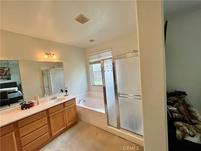 The private primary suite serves as a retreat, featuring dual vanities, soaking tub, separate shower, and a walk-in closet large enough to feel like a dressing room.