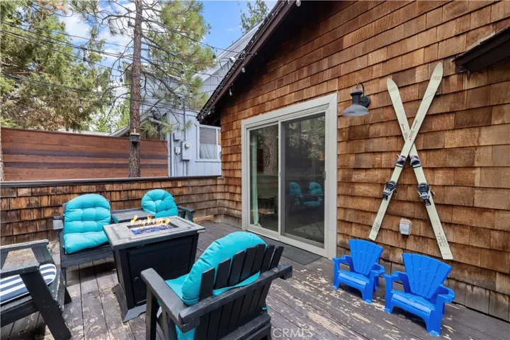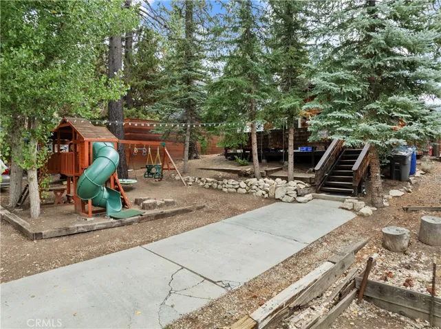 This Moonridge retreat is the mountain escape you have been waiting for, offering Big Bear living in every season. Nearly 1,000 sq ft with 2 bedrooms and 2 bathrooms, it is thoughtfully updated with LVP flooring throughout, fresh finishes, and a new smart ductless A/C in the living room to keep summer days refreshingly cool and winter nights cozy warm, easily controlled from your phone or the included remote. The kitchen opens to the living room where a stunning rock fireplace with a wood burning stove insert anchors a welcoming gathering space. The large front yard boasts a private playground and plenty of room for sledding and snow play in the winter, your own personal winter wonderland, a rare luxury in Big Bear. The front deck is perfect for grilling and entertaining with an included BBQ grill and fire pit. The guest bedroom enjoys a private back deck to take in sweeping views of Snow Summit, Bear Mountain, and the surrounding peaks. The guest bathroom includes a shower in tub combination and a large frameless anti fog LED light wall bathroom vanity mirror. The spacious primary bedroom offers a private bathroom with a walk in shower, dual sinks, and in home laundry for convenience. Centrally located between Bear Mountain Resort, Snow Summit Resort, Bear Mountain Golf Course, The Village, the lake, and a multitude of restaurants, groceries, shopping, and amusement attractions, there is always something to do for all ages. Whether it is skiing and snowboarding in winter, hiking and biking in spring, golfing and lake days in summer, or crisp autumn nights under the stars, this home delivers year round adventure and memorable mountain living. This turnkey property offers both lifestyle enjoyment and income potential, and it also has a proven track record as a short term rental for those seeking a turnkey Airbnb opportunity.