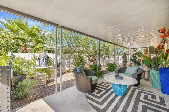 Beautiful property located in the esteemed Historic Blue Skies Village, a community originally created by iconic figures Bing Crosby, Burns, Allen, and Jack Benny. This is truly unique neighborhood. This home has been completely remodeled to the highest standards. Situated on expansive, park-like grounds, this property stands out as a gem within a gated 55+ community. Key Features Include: – Low HOA Fees: $425 per month, covering internet, trash, cable, internet, and water services. Extremely low property taxes. – Ownership Advantage: You own the land outright, resulting in property taxes based solely on land value. Gourmet Chef’s Kitchen: with upscale appliances, brand-new cabinetry, and elegant quartz countertops, Dual-pane windows, new wide plank flooring throughout, and tiled bathrooms. The home has an Expansive Outdoor Space: A gated, beautifully landscaped garden wraps around the home, providing ample room for gatherings while enjoying breathtaking mountain views and sun exposure throughout the day. The property has more than three covered parking spots. Residents enjoy access to a saltwater community pool and spa, a fitness center, and a meeting hall designed by renowned mid-century architect William F. Cody. Prime Location: Blue Skies Village is adjacent to the Butler-Adams trail, ideal for morning walks, and surrounded by multimillion-dollar neighborhoods. Additionally, it is just a short distance from Eisenhower Hospital, Palm Desert and Palm Springs.