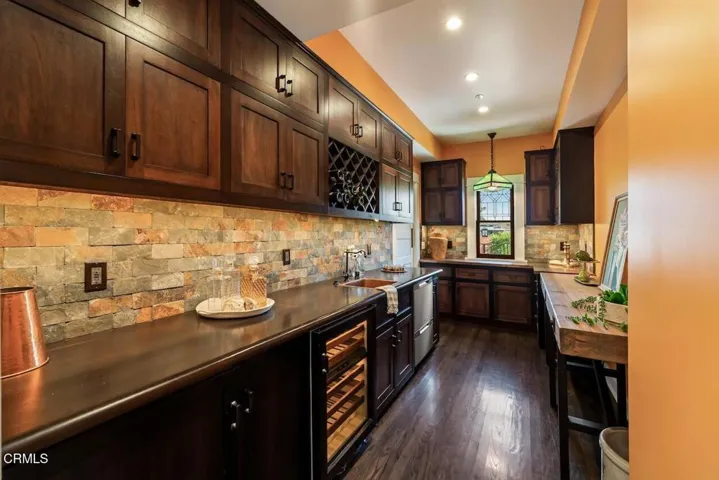 Welcome to the Patton Estate–an architectural jewel on one of North San Gabriel’s most prestigious streets.Originally designed by noted architect Charles W. Buchanan, this distinguished Craftsman farmhouse has been meticulously restored and thoughtfully modernized, blending timeless character with contemporary luxury. Enter through the private gated drive, where brick pathways guide you to one of San Gabriel’s most pedigreed residences.A sweeping wraparound porch introduces the home. Inside, the formal living room is framed by stained-glass windows and a carved fireplace, while the wood-beamed library with French doors opens to a secluded patio. The elegant dining room flows into a butler’s pantry with copper countertops and premier appliances, including a Sub-Zero wine refrigerator, Fisher & Paykel dishwasher drawers, and Scotsman icemaker.The chef’s kitchen is a true centerpiece, featuring Thermador Professional appliances–a six-burner range, double refrigerator, and four ovens–anchored by a massive marble island with prep sink. A walk-in pantry and panoramic window overlooking the backyard elevate the space.Entertaining is effortless as a second dining room connects to the family room, highlighted by a fireplace, stained-glass details, built-in seating, and walls of glass that open to a private courtyard patio.The home offers two luxurious primary suites. The upstairs retreat boasts vaulted ceilings, sweeping views, a spa-like bath with soaking tub, rainfall shower, and dual vanities. The main-level suite includes patio access and a Carrara marble bath. Four additional bedrooms and four-and-a-half baths provide generous accommodations.The estate’s expansive grounds evoke a private resort. A heated saltwater pool with Baja shelf is complemented by a versatile pool house with polished concrete floors –ideal as an office or gym. A dramatic brick terrace with grand fireplace, rose and sculpture gardens, and sprawling lawns large enough for pickleball or volleyball to complete the setting.Additional highlights include permitted living quarters above the garage with full kitchen, dining, and bedroom, plus a garage currently serving as an art studio with storage. A spacious Trex deck offers the feeling of being nestled in the treetops.Rarely does a property of this scale, pedigree, and beauty come available. The Patton Estate is not simply a home–it is the crowned jewel of San Gabriel.