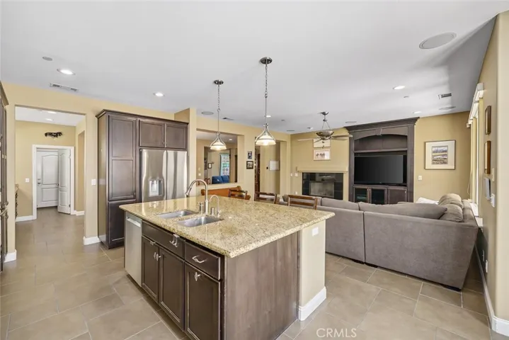 Resort living awaits in this Lopez home with a lovely stone facade, spacious porch and beautiful landscaping, located on the corner of a pristine cul-de-sac. At 2,079 sq. ft., this well-appointed home offers 2 bedrooms, 2 baths, and a den, plus a clever closet/partial garage conversion which has resulted in a spacious office/study, complete with gorgeous built-ins. Another notable upgrade – multiple skylight tubes throughout to bring in even more natural light. The great room features a cozy fireplace and luxury entertainment center which opens to the chef’s kitchen, a sunny breakfast nook, a built-in desk and direct patio access – it’s a great spot to enjoy your morning coffee while catching up on email. The adjacent chef’s kitchen offers a super efficient set-up featuring GE Profile stainless appliances, including a wall oven/microwave combo and gas cooktop, KitchenAid dishwasher, LG French door refrigerator, rich Shaker-style espresso cabinetry with lots of pot drawers, gorgeous granite island and countertops and smart pendant lighting. An extended Butler’s pantry is located in the adjacent formal dining room, making entertaining your guests a breeze. Head outside and experience a delightfully private and low-maintenance backyard with extensive pavers, planted with trees, shrubs and flowers – it’s your go-to spot to simply relax and enjoy Central Coast living. In the evenings, retire to your primary suite – a spacious bedroom with direct patio access, plus a master bath with dual sinks, decorative tile backsplash, tile shower with seamless glass enclosure, a large walk-in closet and linen storage. Up front is the 2nd bedroom with a full en-suite bath, plus the den, which could easily be converted into a 3rd bedroom. In addition, there’s a laundry and 2-car garage. Best of all, this delightful Lopez home is located in Trilogy Monarch Dunes with Adelina’s Bistro, Sandalwood Spa, art studio, pool, fitness center, pickleball courts, and so much more.