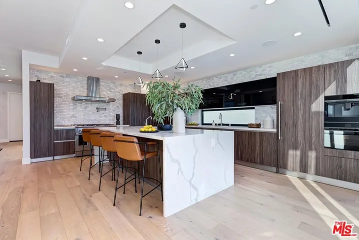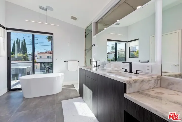 Exquisite brand new built 2022 modern villa with 3-levels of extraordinary living & entertaining areas in desirable Beverly Hills adjacent(1st home from Beverly Hills). A fully equipped home with 3 levels of living areas, separate guest house, cabana, fire pit, pool & spa tub, 2 car garage, elevator… Formal entry way to all entertaining areas with family room w/ fireplace, dining area, wine cellar and gourmet kitchen with an oversized center island all with direct access to the entertainers’ backyard. The first floor also features a two car garage and guest’s powder room. Sliding doors takes you to the private entertainers’ backyard w/sparkling pool & spa, cabana, massive fire pit and lounging areas with shower. Outdoor area also features contemporary guest house with high ceilings, central air, little kitchenette and bathroom. Luxury living continues upstairs with an additional family room, 3 bedroom suites including a pristine master suite with fireplace, sliding glass doors- leading out to a private balcony overlooking the backyard, walk-in closet, and a spa-like bath with large steam shower, soaking tub, dual sinks and vanity area. Underground level offers big ballroom, wet bar, temperature-controlled wine cellar, patio and incredible large underwater window view of the pool. In addition, this level has a bedroom suite with full bathroom, gym and a den/office/maid room with full bathroom. Top notch amenities include security cameras, smart home system, surround sound, elevator, pool, spa, guest house, laundry room, central vacuum, 2 car garage and more. Lower level (basement) 1443 sqft * First floor 1023 sqft * Second floor 1195 sqft * Recreation room (guest house) 200 sqft * Cabana 144 sqft * Garage 346 sqft.
