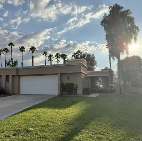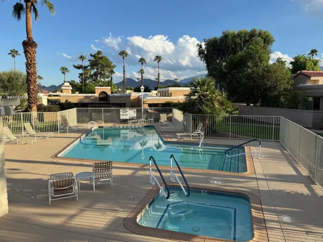 PRICE REDUCTION: **Experience Desert Living at Its Finest: Stunning Condo in Casablanca Community** Welcome to your dream home nestled in the sought-after Casablanca community, where elegance meets comfort in this stylish 2-bedroom, 2-bath condo with an inviting den. Perfectly positioned in the heart of Palm Desert, this residence offers a tranquil oasis just minutes away from shopping, dining, and everything the vibrant desert lifestyle offers. As you step inside, you are greeted by a welcoming entryway that seamlessly flows into the modern kitchen, complete with luxurious marble countertops. Adjacent to the kitchen, discover a convenient laundry area, a chic guest suite, and a spacious living room adorned with vaulted ceilings and clerestory windows, bathing the interior in natural light. The cozy fireplace adds an element of warmth and charm, making this space perfect for relaxation. At the heart of the home, the den features a stunning new granite bar top, ideal for hosting friends and family. The thoughtful layout provides excellent separation between the two bedrooms, ensuring privacy and comfort for everyone. Step outside to enjoy the wraparound patio, accessible from both the living room and the primary suite. Here, you can bask in breathtaking views of the Santa Rosa and San Jacinto Mountains, creating the perfect backdrop for indoor-outdoor living. The oversized garage offers ample storage space and a connection for an EV charger. Convenience continues with an interior laundry room, complete with a washer and dryer. Residents of Casablanca enjoy meticulously maintained grounds featuring lush greenbelts, tennis and pickleball courts, and access to four pools and spas. The HOA provides exceptional coverage, including cable TV, Internet, exterior landscaping, and trash service. Recent upgrades include elegant granite countertops in the guest bathroom with two new vanities, as well as gorgeous hardwood floor tiles throughout the living and dining areas. The master and guest bedrooms are adorned with brand new carpet, adding a touch of luxury to your living experience. Don’t miss the opportunity to call this exquisite condo your home and indulge in the ultimate desert lifestyle. Schedule a viewing today!