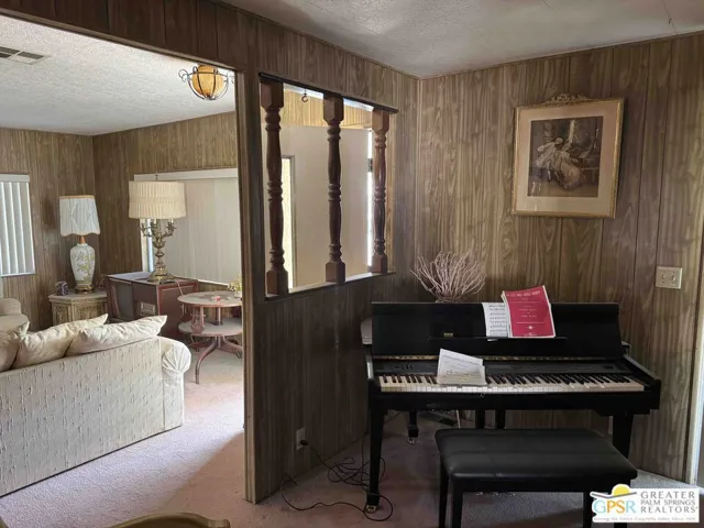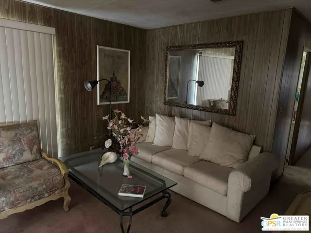 Very large 2 Bedroom 2 Bath manufactured double wide home in Palm Springs View Estates is looking for its next owner to enjoy this wonderful location in ever popular Palm Springs, CA. Filled with many original architectural finishes, keep it as is or make it your own. Palm Springs View Estates is a 55+ community and features community pools and spas. There is covered car port parking for at least two cars and the primary suite with bath ensuite is incredibly spacious. Welcome to your new home. Easy to show and visit, too!