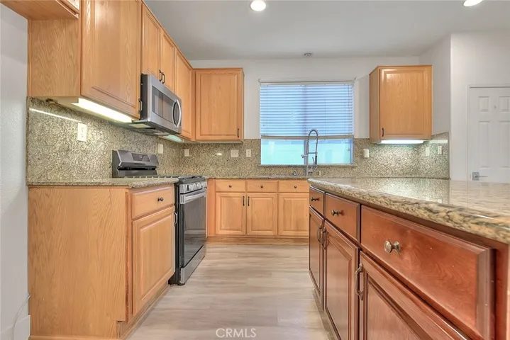 Modern upgrades throughout include recessed lighting, renovated laminate flooring, and a stylish new bar area complete with a built-in wine cooler. Upstairs, you’ll find spacious bedrooms with ceiling fans and mirrored closets, plus a primary suite with a large walk-in closet for all your storage needs.
