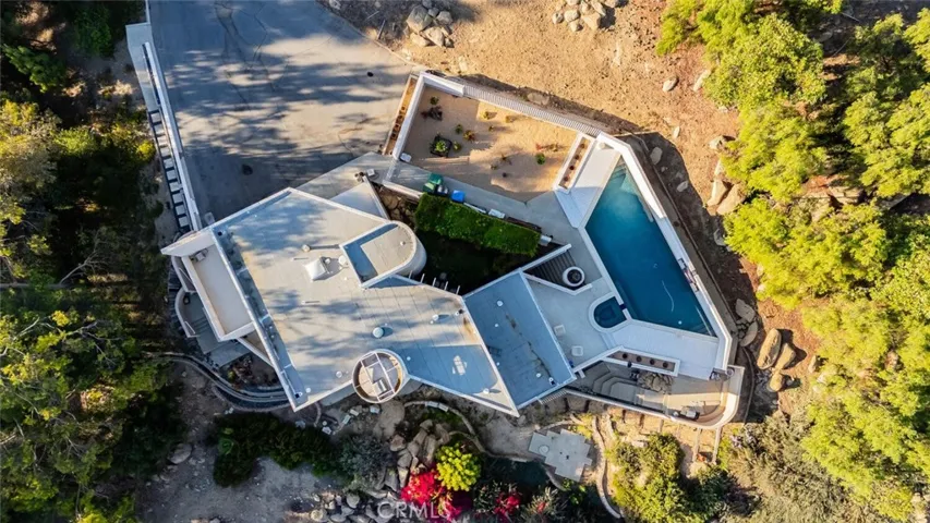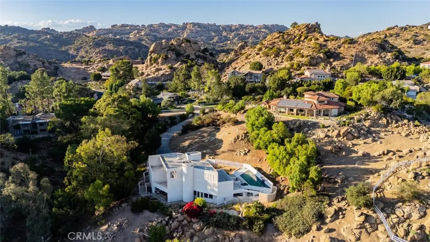 The primary suite occupies its own private upper level, complete with a separate study, walk-in closet, and a spacious viewing deck—ideal for morning coffee or sunset reflection. The three secondary bedrooms are located in a separate wing, each thoughtfully designed with built-ins and functional elegance. Outside, the expansive grounds are a natural sanctuary with incredible boulder formations, multiple viewing decks, water features, and a one-of-a-kind pool and spa—creating a resort-like ambiance perfect for relaxation or entertaining. A 3-car garage completes this exceptional offering.