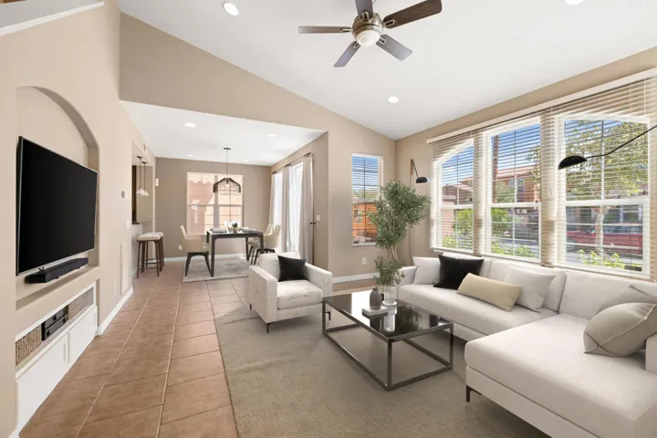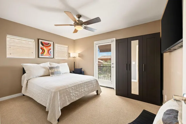 Welcome to 52161 Rosewood Lane, the best home under $500K in La Quinta! This 3 bed, 2.5 bath residence offers soaring high ceilings and walls of windows that fill the open-concept floor plan with natural light. The spacious living area features a surround sound entertainment system and flows effortlessly into the dining area and kitchen with granite counters, pantry, and abundant storage. From the dining area, sliding doors open to a private patio, creating a seamless connection for year-round indoor/outdoor living. Upstairs, the primary suite showcases mountain views, a private patio, walk-in closet, and an ensuite bath with a recently remodeled shower. Two guest bedrooms–one with sweeping mountain views and the other with a Juliette balcony–are paired with a full bathroom to comfortably accommodate family and friends. With an attached 2-car garage and excellent rental potential, this home is move-in ready. The gated community welcomes you with meticulously maintained landscaping and a true resort-style lifestyle: pool with cabanas, spa, barbecue lounge area, fitness center, tennis court, and scenic walking paths with pet-friendly areas. Don’t miss this incredible opportunity–schedule your private viewing today!