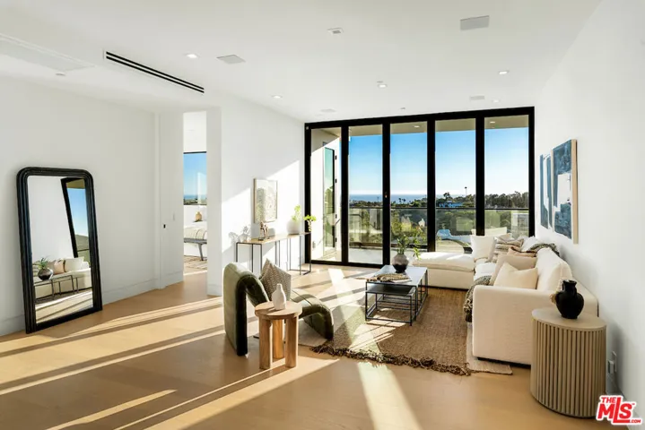 Discover a Malibu New Construction Ocean View estate minutes from Point Dume and set on over 2 acres of spectacular lush landscape and a vineyard. At the end of a private cul de sac, this exceptional Modern Organic luxury estate is a serene compound with commanding views of the Pacific Ocean, rolling vineyards, and the Santa Monica Mountains. From the moment you arrive, the estate makes a statement with its gated and circular motor court and elegant approach that sets the tone for the sophistication within. Soaring ceilings, walls of glass, and expansive open living spaces seamlessly blur the lines between indoors and out, while over 3,000 square feet of wraparound ocean view decks invite you to take in the ever-changing ocean and Tuscany inspired 1 acre vineyard vistas. Every detail of the estate has been carefully curated with the highest level of craftsmanship and design. Fleetwood windows and doors frame dramatic sight lines, while custom white oak built-ins, handmade zellige tiles, and striking stone selections such as Taj Mahal quartzite and leathered granite create a refined, organic palette throughout. The open-concept living area flows effortlessly into the chef’s kitchen featuring a 12-foot island clad in leathered stone, top-of-the-line Miele appliances, lime-washed walls, and a large walk-in pantry. The thoughtful floor plan offers five bedrooms and five bathrooms, including two bedrooms on the main level. Upstairs, the primary suite is a true sanctuary with dual closets, a private sitting room, and a spa-inspired bath dressed in Taj Mahal quartzite. The upper level also includes two additional bedrooms and a spacious family lounge designed for relaxed living. An elevator connects both levels with ease. World-class amenities elevate the lifestyle experience, including a state-of-the-art home theater, wine cellar, stylish bar and lounge, and an innovative indoor/outdoor gym that makes fitness a daily indulgence. The outdoor spaces are equally captivating. Resort-like grounds feature a sparkling pool and spa, built-in fire pit, custom barbecue, and an expansive grassy pad of nearly 4,000 square feet with a golf practice area ideal for entertaining, recreation, or simply soaking in the tranquility of your surroundings. The property has been designed for convenience and security, with a four-car garage, video intercom system, and ample additional parking for over 10 vehicles, including space for an Airstream or boat via private side yard access. This new construction secluded estate by architect Itay Mane represents a rare opportunity to own an ocean view retreat in Malibu, complete with a uniquely picturesque vineyard, perfectly positioned near Point Dume and Malibu beachside conveniences.