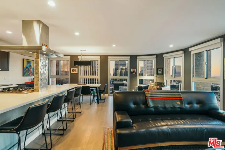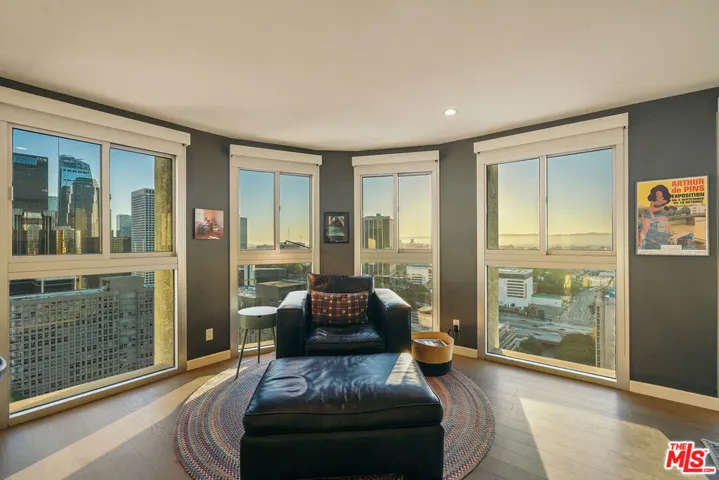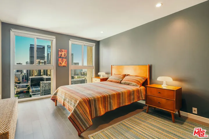 Experience this stylishly reimagined corner unit at the renowned Bunker Hill Tower, Downtown LA’s premier full-service high-rise. From sweeping city lights to the Pacific Ocean, enjoy dramatic panoramic vistas that also showcase landmarks such as the Hollywood Sign and Griffith Observatory. Inside, newly installed wood flooring pairs beautifully with floor-to-ceiling double-paned windows, filling the home with natural light. Two generous bedrooms and two spa-like bathrooms reflect meticulous attention to detail. The open-concept kitchen blends sleek design with everyday functionality. Perfectly situated in the cultural hub of DTLA, you’ll be just steps from the Disney Concert Hall, Music Center, Broad Museum, MOCA, and the Frank Gehry-designed Grand LA. The recently opened Grand Avenue Arts/Bunker Hill Metro Station places the entire city within easy reach. Residents of Bunker Hill Tower enjoy unmatched amenities: 24/7 concierge and security, gated guest parking, an Olympic-sized heated pool, two spas, tennis and pickleball courts, BBQ and picnic areas, playground, and two fully outfitted fitness centers. On-site conveniences include a market, beauty salon, and chiropractic office. HOA fees simplify city living by covering all essential utilities (electricity, gas, water, internet, trash, and secure parking) making this the ultimate lock-and-leave urban retreat.