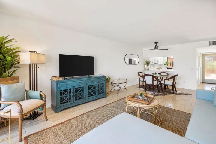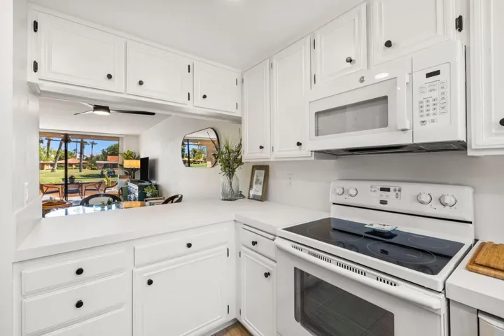 Welcome to 56 Majorca Drive in Rancho Mirage — a beautifully renovated home within the guard-gated community of Sunrise Country Club. This charming 1-bedroom, 1.5-bathroom renovated condo offers 854 square feet of open concept living space and combines comfort and resort-style amenities in one of the desert’s most desirable locations.Step through the new front door, featuring a rain glass panel, and into a thoughtfully designed home that has been tastefully upgraded throughout. The popcorn ceilings have been removed, and the interior has been freshly painted. Elegant new tile flooring runs throughout the home, complementing the bright, open-concept layout that is perfect for both everyday living and entertaining.The kitchen has been modernized with porcelain countertops, a coordinating backsplash, and new cabinetry. A double-pane window with a remote-controlled shade offers natural light and views, while a new sink, fixture, and garbage disposal add convenience and functionality.The spacious primary suite features a new 1-ton mini split A/C unit, a double-pane sliding door, and updated window treatments. The en-suite bathroom has been completely renovated with a walk-in shower, high-end Grohe fixtures, a Toto toilet, and sleek finishes throughout. The powder room has also been updated with a new vanity, mirror, Toto toilet, and exhaust fan.Additional upgrades include new exterior light fixtures, a Ring doorbell, Whirlpool washer & dryer located in the garage, and a new LiftMaster garage door opener.Enjoy your morning coffee in the private front courtyard with mountain views, or relax on the expansive rear patio overlooking the serene golf course.Residents of Sunrise Country Club enjoy exclusive access to an array of amenities, including an 18-hole executive plus golf course, tennis and pickleball courts, multiple pools and spas, a vibrant clubhouse, and a well-equipped fitness center. Ideally located just minutes from premier shopping and dining at The River and El Paseo, and only a short drive to Palm Springs International Airport, this home offers the ultimate in desert living.Whether you’re looking for a seasonal escape or a full-time residence, 56 Majorca Drive is move-in ready and waiting for you.