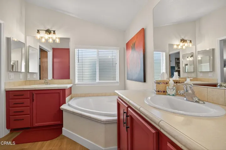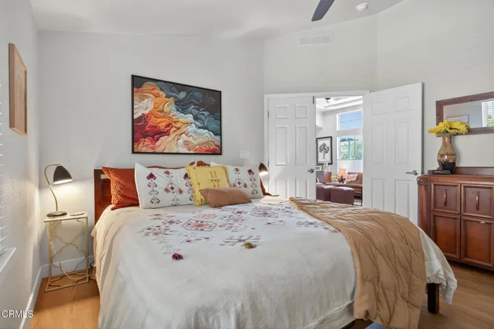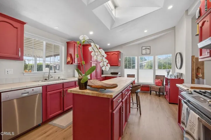 WOW!! Coastal living at it’s finest. Situated on a quiet, corner near the back of one of Ventura’s most desirable 55+ communities adjacent to the Ventura Harbor, this home is a gorgeous retreat and has it all. The current owner has recently spared no expense and has meticulously updated and thoughtfully curated this spacious and bright home. Welcoming you home is the serene front porch, situated on a corner, looking towards the hillside, where you will view palm tree skies and glorious sunsets. Once inside, enjoy the light filled, spacious rooms with high, vaulted ceilings, lots of windows. Centered around a beautiful gas fireplace is the living area which flows nicely into the formal dining area and kitchen. The bright and open kitchen features an extended custom island with seating, additional recessed lighting, skylights, newer appliances and a cozy breakfast area perfect for everyday living and entertaining. The primary bedroom, bathroom and closets are more than generous in size and invite relaxation. There is a bonus room off a newly expanded hallway that is currently used as an additional guest room which also has access to the peaceful yard. The additional guest bedroom and bath are also nicely sized. Numerous, recent upgrades include luxury vinyl plank flooring throughout, new light fixtures, custom window coverings, ceiling fans, canned lighting in the living room and kitchen, an instant hot water heater and painting both inside and out. The roof has recently been replaced and two solar tubes were added as well as rain gutters. Enjoy the outdoor spaces that are ample, private and low maintenance with high end artificial turf, outdoor lighting and tasteful design. Ventura Marina community is amazing and offers an abundance of resort style amenities. Enjoy a heated pool and spa, gym, extra large clubhouse with stage and resort style kitchen. A gathering room with a with fireplace, view of the lake, billiards, card room, library and even a car wash area. There are many community events year around. Just steps away is the Ventura Harbor and beaches with dining, entertainment, boating, walking paths, shopping, etc. Home doesn’t get much better than this for coastal living. Come see this slice of paradise for yourself and make it your home!