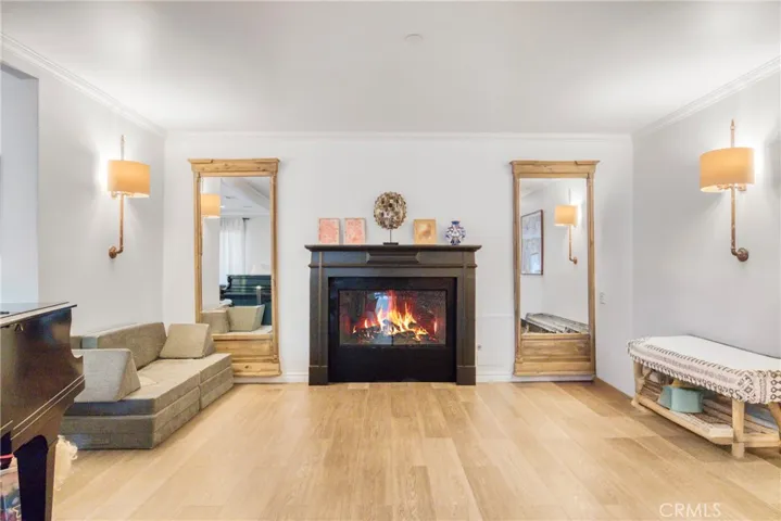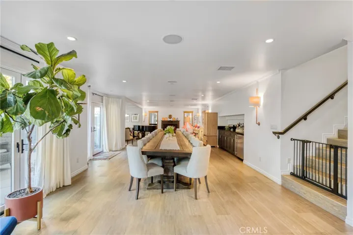 A few steps up, you’ll find three additional bedrooms, two with en-suite bathrooms, including a second primary suite. On the lower level, the home opens to an expansive dining room large enough to host gatherings of 20+ guests, complemented by an impressive accordion door that creates a seamless indoor-outdoor flow. The lower level also offers a second family room with a fireplace, an additional lounge area with its own fireplace—perfect for a library or reading retreat—and another guest bathroom.