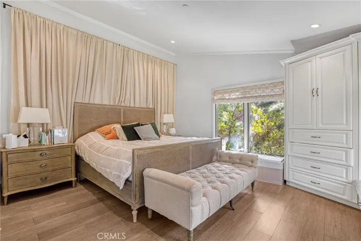 Step inside to a bright family room seamlessly connected to the gourmet kitchen, equipped with Thermador appliances—including a 6-burner stovetop, built-in oven, microwave, refrigerator, and dishwasher. The kitchen also features a cozy breakfast nook. Off the kitchen there is a private laundry room, and direct access to the 2-car garage. The first floor includes a guest bathroom and a primary suite for ultimate convenience.