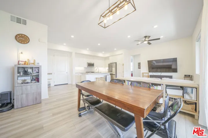 Welcome to a meticulously maintained, like-new residence in a beautifully designed eco-friendly community. Originally built in 2022 and thoughtfully improved by its current ownersMr. and Mrs. Clean themselvesthis single-level gem is nestled within a three-story building and offers the perfect blend of style, function, and comfort in one of the area’s top-rated school districts.The home features a spacious open-concept floor plan that seamlessly connects the kitchen, dining, and living areas, drenched with natural light. High-quality laminate flooring runs throughout the bedrooms and main living spaces, adding warmth and sophistication. The kitchen is equipped with sleek granite countertops and a large center island offering ample cabinet storageperfect for both daily living and entertaining. Just beyond the dining area, a sliding glass door opens to a generously sized balcony where you can unwind and take in breathtaking sunset views over the mountains.The primary suite is a serene retreat, complete with a spa-inspired bathroom featuring elegant double vanities. All windows throughout the home offer a peaceful view of the beautifully landscaped and maintained courtyard, creating a sense of privacy and calm. The home also includes a side-by-side two-car garage with additional space for storage, along with a dedicated EV charging station to accommodate your electric vehicle needs.This residence is powered by solar energy, significantly reducing electricity costs while contributing to a greener lifestyle. Residents enjoy access to an array of resort-style amenities, including a sparkling community pool, clubhouse, playground, bike track, lush gardens, and scenic walking trails. This is a rare opportunity to own a turnkey home that offers all the benefits of new construction, enhanced by thoughtful upgrades and pristine upkeep. Come experience a lifestyle of comfort, convenience, and modern elegance – schedule your private showing today.