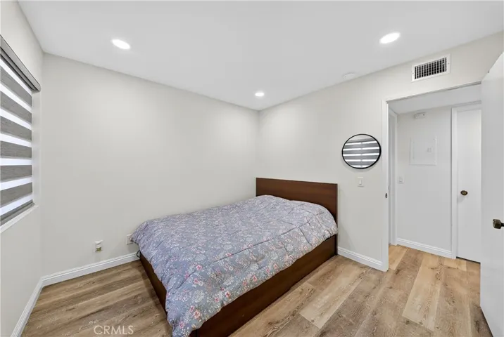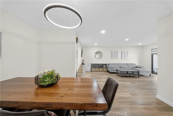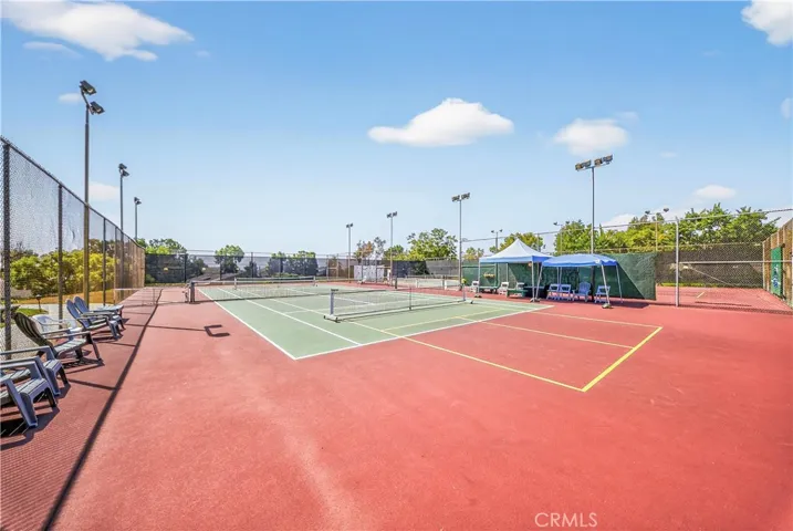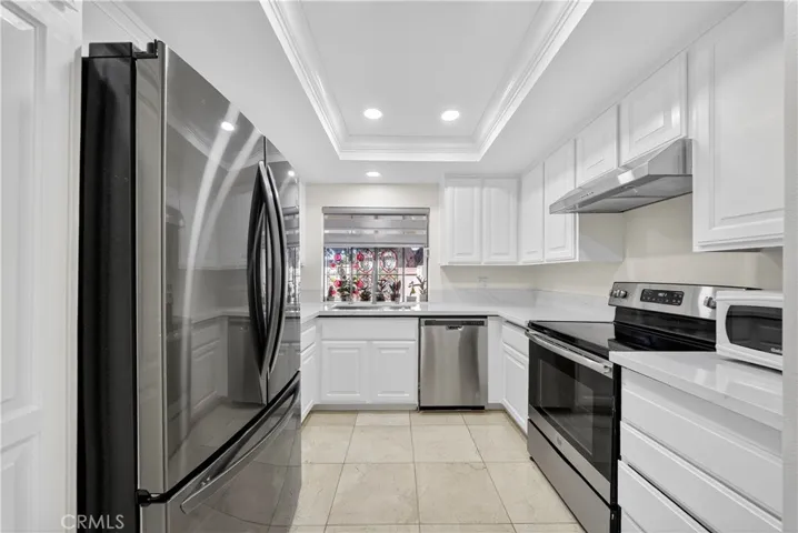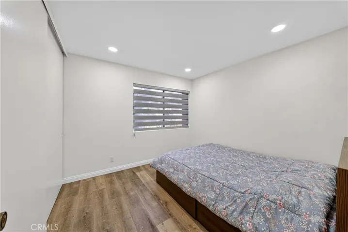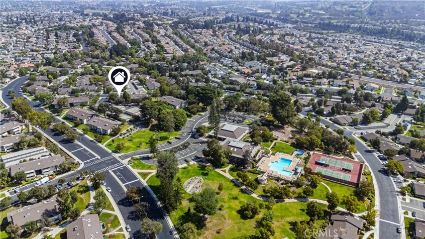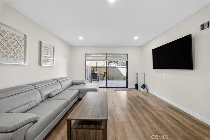 Welcome to this beautifully updated downstairs unit with no steps, located in the highly desirable La Mirada Landmark 55+ community. This bright and airy 2 bedroom, 2 bathroom condo features luxury vinyl flooring, fresh paint, recessed lighting, and dual-pane windows that create a modern and inviting atmosphere. The spacious living room opens to a private patio with newer tile, perfect for outdoor relaxation. The remodeled kitchen showcases sleek quartz countertops, while both bathrooms have also been tastefully updated. Ample storage is provided with large closets, and the convenience of having the 1-car garage nearby (Garage 3P1 #4) and plenty of community parking adds to the home’s appeal. Perched at the highest point of Landmark, enjoy a serene setting within a guard-gated community offering 24/7 security patrols, resort-style amenities including a pool, spa, tennis and pickleball courts, fitness room, clubhouse, and scenic walking trails. Located across from the La Mirada Golf Course and near the H-Mart shopping center, this property combines serene living with convenience and offers the perfect blend of comfort, security, and an active lifestyle.