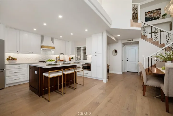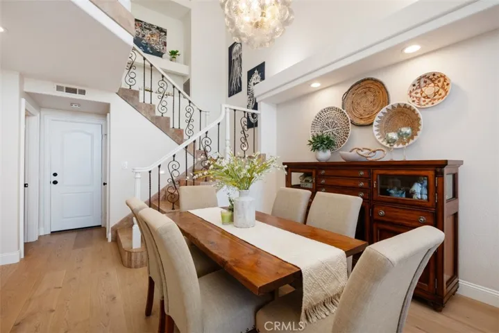Perched in the sought-after Jamaica community of Niguel Summit in Laguna Niguel, this beautifully remodeled townhome blends designer finishes with sweeping ocean and city light views. The transformation of this home is a refined yet comfortable retreat just minutes from world-class beaches, dining, and trails. The main level was reimagined to open the flow of the living, dining, and kitchen spaces showcasing the soaring ceilings, French oak flooring, and a striking designer chandelier by Visual Comfort set the tone. The gourmet kitchen is open to the dining / family space offering quartz countertops, custom cabinetry, premium appliances including a drawer microwave and double oven gas range, and a stylish backsplash. The inviting living area features a modern gas fireplace and flows seamlessly to a private patio framed by fresh turf landscaping and endless ocean breezes, ideal for entertaining or unwinding after a long day at work. Upstairs, the primary suite offers a private view balcony, walk-in closet with custom organizers, and a spa-inspired bathroom with dual vanities and designer tile. The secondary suite boasts cathedral ceilings, an en-suite bath, and its own walk-in closet. Additional highlights include remodeled powder bath, built-in shelving, newer garage opener motor, garage storage, newer washer/dryer, AC, and updated landscaping. Enjoy resort-style amenities with a community pool, spa, and private trail access; all just moments from Laguna Beach, Dana Point Harbor, hiking trails, golf, and 5-star resorts. 29494 Port Royal isn’t just a home, it’s a statement of care, pride, and elevated coastal living. Move-in ready and designed to impress.