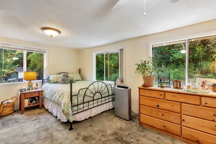 A serene country Home, nestled on 4.5 ac in the shadow of Mt. Madonna! Located in a pastoral setting, a charming 2 bedroom/2 bath Home that is ideal for a weekend retreat or full-time living! For these sellers, it has been a cherished year round home for 30 years! . Entering the Home you pass by an exquisite Fish Pond and gurgling sound. An outdoor entry Trex-type deck is a great place to read in the morning, with a cup of coffee. Entrance is through the “Mud Room,” common in many country homes. Vaulted ceiling in the Great Room with a wall of windows, ceiling fans, granite countertops in Kitchen with garden window. The Primary Bedroom has views to wooded mountains and private patio and barbeque area. 4 steps lead from Great Room to the outdoor patio and entertaining area. Springtime wild sweet peas & daisies color the hillside with magic! This has been a horse property with large stall and hot-wired paddock, water & electricity, septic close to the horse area. Possible sunlit ADU homesite, with paths to seasonal creek. Serene and private yet less than 10 miles to town. On the South County Wine Trail, just up the hill from Fernwood Cellars and Martin Ranch Winery. Part of a welcoming country community of homes, on a private road. Make it your next Special Home!!