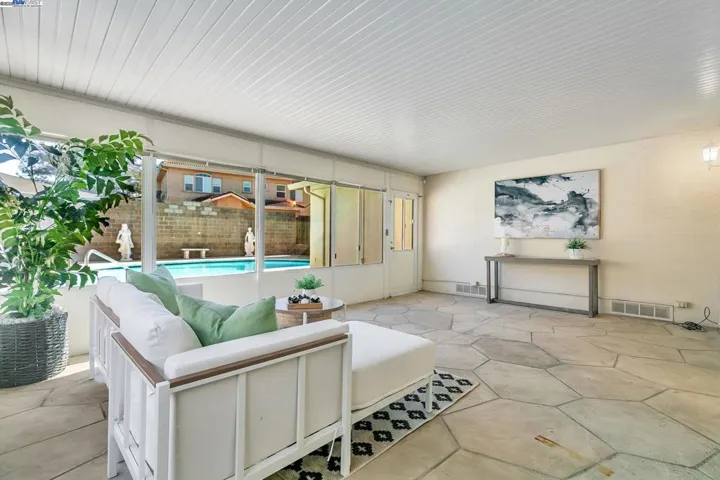 Location, location, location! Highly desirable single-story home in one of Fremont’s most sought-after neighborhoods. Situated on a tree-lined street close to Mission Valley Elementary, this North-facing home was recently updated throughout. Main house approx. 1,758 sqft + permitted sunroom approx. 260 sqft = approx 2,018 sqft of living space. The open floor plan offers a formal front living room, a dining room and a separate family room. A permitted sunroom opens up to the private backyard pool with 100% owned solar heating. The remodeled kitchen offers oak wood cabinetry, granite slab counters and full backsplash, and updated appliances. Additional features include remodeled bathrooms, hardwood flooring, new interior paint, recessed lighting, updated dual paned white vinyl windows & sun tunnels. Enjoy modern comfort with upgraded AC & furnace system, central vacuum and copper plumbing. Beautifully landscaped low-maintenance front & back yards. Front yard with slate stone walkways, custom retaining walls and artificial low maintenance lawn. Large backyard patio surrounding the pool & detached office. Close to Lake Elizabeth Central Park. Close to tech company shuttle bus stops. Top-ranked public schools include Mission Valley Elem, Hopkins Jr High and Mission San Jose High.