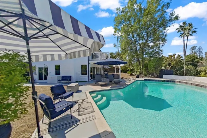 South of the Blvd. with a Million Dollar View!! Woodland Hills stands as one of Los Angeles’ most sought-after residential enclaves. A charming, thoughtfully designed home with 5 spacious bedrooms & 3 baths, offering the perfect blend of suburban tranquility and city convenience. Situated on a hillside with a flat, large and oversized 17,000+ SF lot. This residence is more than a house—it’s a sanctuary where comfort, elegance, and modern amenities converge. Step inside to discover an expansive open concept living area. The formal dining area flows gracefully from the living room. The large picture windows capture sweeping views of the surrounding mountainous views of the valley, inviting the outside in. The kitchen provides a nice space with a breakfast nook. One Bedroom and full bath on the 1st floor. Plenty of cabinetry and storage with expansive laundry room on main level. The primary suite is a true retreat with a fireplace, boasting a high ceiling, a spacious walk-in closet with custom organizers, don’t forget a private balcony that overlooks the valley views and sunrises. The primary en-suite is a spa-inspired bathroom with a frameless glass shower, soaking tub, heated floors and dual vanities. The private quarters comprise of four additional, generously sized bedrooms, each with ample closet space. Step outside to a sprawling backyard oasis with a heated pool, a shaded partially covered outside living area and multiple seating areas framed by private surroundings. This captivating home awaits your personal touch. Don’t miss the chance to make it your own and experience the best of Woodland Hills living. Most recent work done on the home, exterior paint, some interior paint, newer roof, water heater, pool light and heating.
