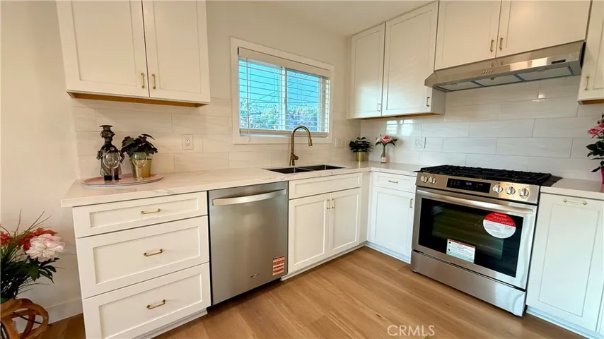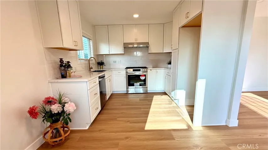 The brand new kitchen includes quartz countertops, tile backsplash, new cabinetry, pantry, dishwasher, gas stove/oven, and refrigerator. Bedrooms offer mirrored closet doors and extra storage, while the fully renovated bathroom boasts Andover White porcelain tile, a comfort-height toilet, and a floating vanity cabinet.