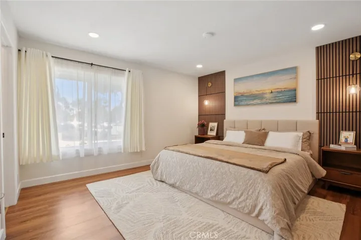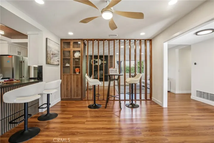 The commitment to excellence continues in the additional spacious bedrooms, each boasting its own unique designer accent wall, and a dedicated home office perfect for modern work-life needs. The experience extends outdoors to a private backyard oasis, where a large, covered gazebo creates an all-weather living and dining room, perfect for enjoying the Southern California lifestyle year-round.